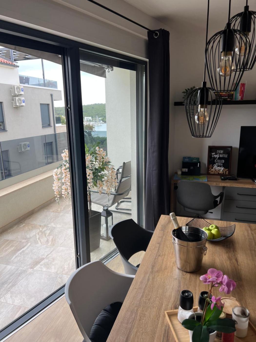 The apartment with a balcony and sea views has 1 bedroom, a living room, a flat-screen TV, an equipped kitchen with a dishwasher and an oven, and 1 bathroom with a walk-in shower. Towels and bed linen are available in the apartment. For added privacy, the accommodation has a private entrance and soundproofing.