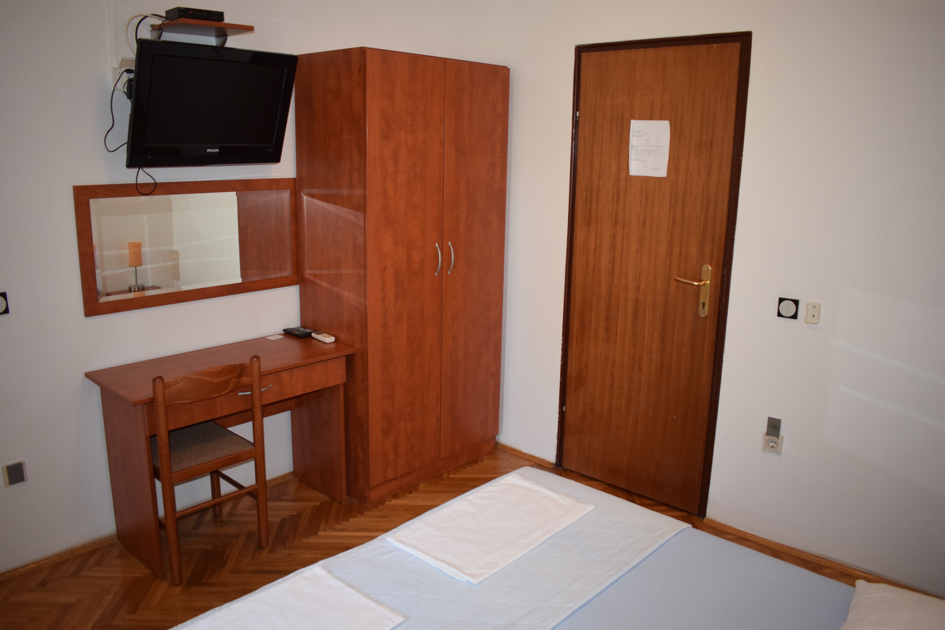 House 4299 in the town of Sveti Filip i Jakov, Biograd - North Dalmatia has accommodation units of type Studio flat (7), Apartment (1) and is 280 m away from the sea. The nearest beach to this accommodation is a pebble beach. Other guests will most likely be present in the house, as it is dividedmultiple accommodation units. The hosts reside in the house. The house owner is under no obligation to accept additional persons and pets that were not stated in the reservation request and it is necessary to report them in advance.AMENITIES Courtyard (200m2, Sitting area), Barbecue: shared, WiFi Internet LOCATION AND ACCESS Facility is situated near a local road Local road between the property and the beach Car access possible: Yes The facility is situated in relatively quiet surroundings The facility is partly surrounded by vegetation DISTANCES Sea: 280 m Beach: 280 m Center: 3 km Shop: 450 m Urgent medical care: 3 km Pharmacy: 400 m Exchange office: 400 m ATMBank machine: 70 m Tourist info: 650 m Bus station: 3.5 km Gas station: 3 km Farmers market: 450 m