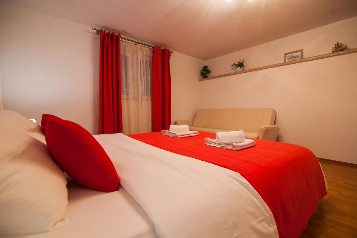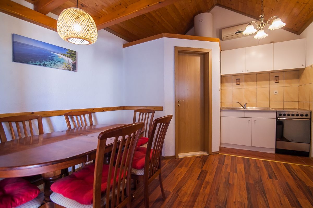 House can accommodate 6 guests. Beds are situated in 2 sleeping rooms, but also in the living room, within 64m2. Guests can use a private terrace to enjoy the warm summer evenings. The house offers the sea view. For full enjoyment and relaxation there is a private barbecue for this accommodation guests only. INCLUDED IN THE PRICE: tourist tax, final cleaning, air-conditioning, parking, internet, iron, hairdryer. The availability of additional services for your chosen dates of stay, as well as their prices (if none are listed) must be checked ahead of time. Any additional services not shown in the price calculation are payable directly to the property owner and only if used by the visitor.
