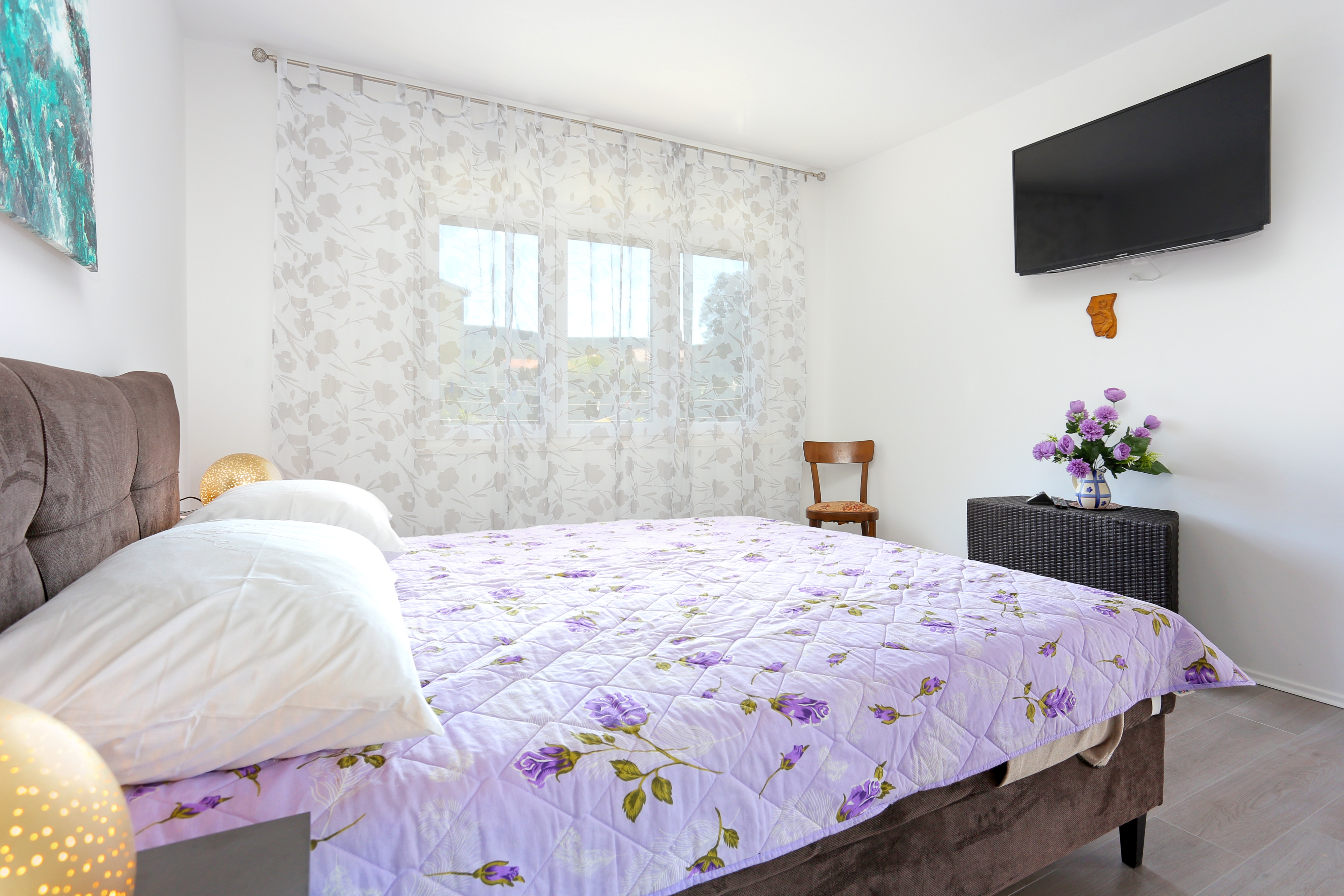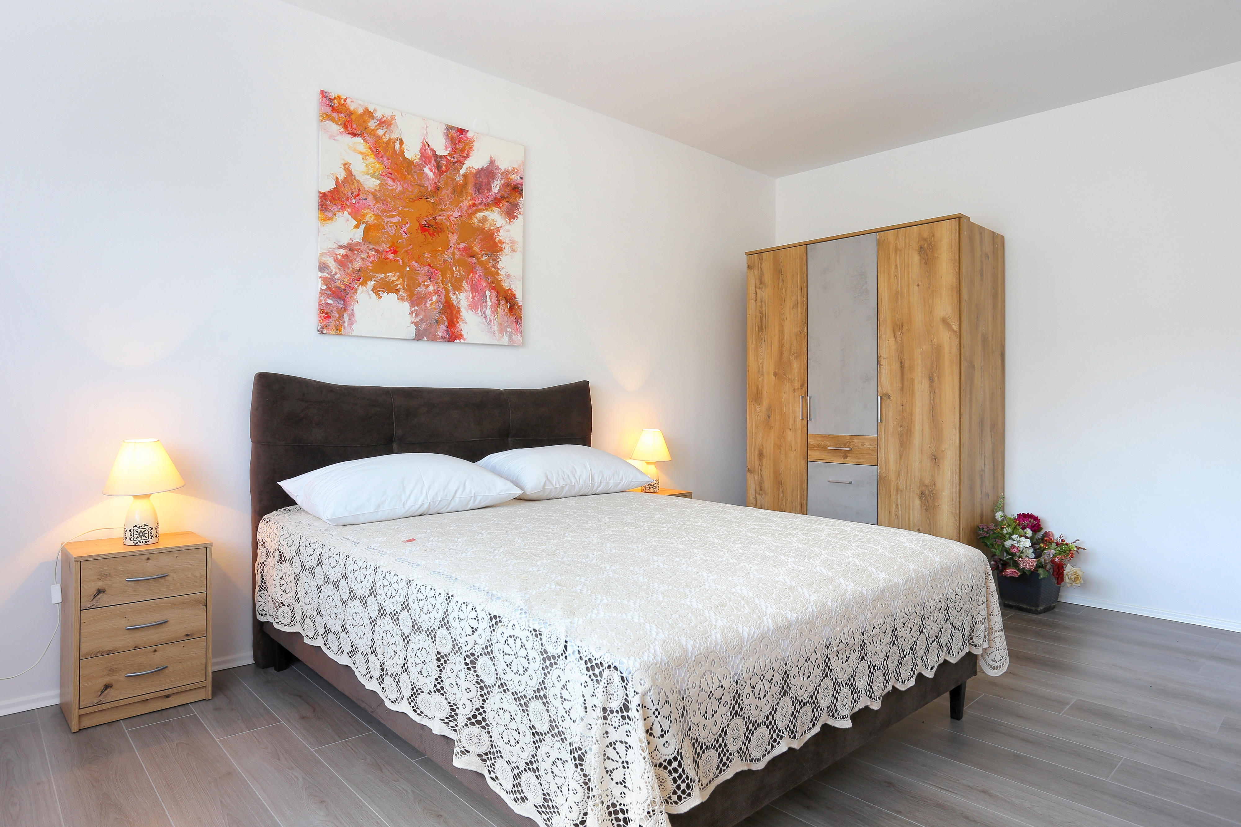 Apartment can accommodate 6 guests. Beds are situated in 3 sleeping rooms, within 65m2. Guests can use a private terrace to enjoy the warm summer evenings. Food can be prepared using barbecue which is shared with other guests too. This accommodation unit welcomes pets at an additional charge. INCLUDED IN THE PRICE: tourist tax, final cleaning, air-conditioning, parking, internet, iron, hairdryer. OPTIONAL ADDITIONAL COSTS: pets (€5.00 per night). The availability of additional services for your chosen dates of stay, as well as their prices (if none are listed) must be checked ahead of time. Any additional services not shown in the price calculation are payable directly to the property owner and only if used by the visitor.