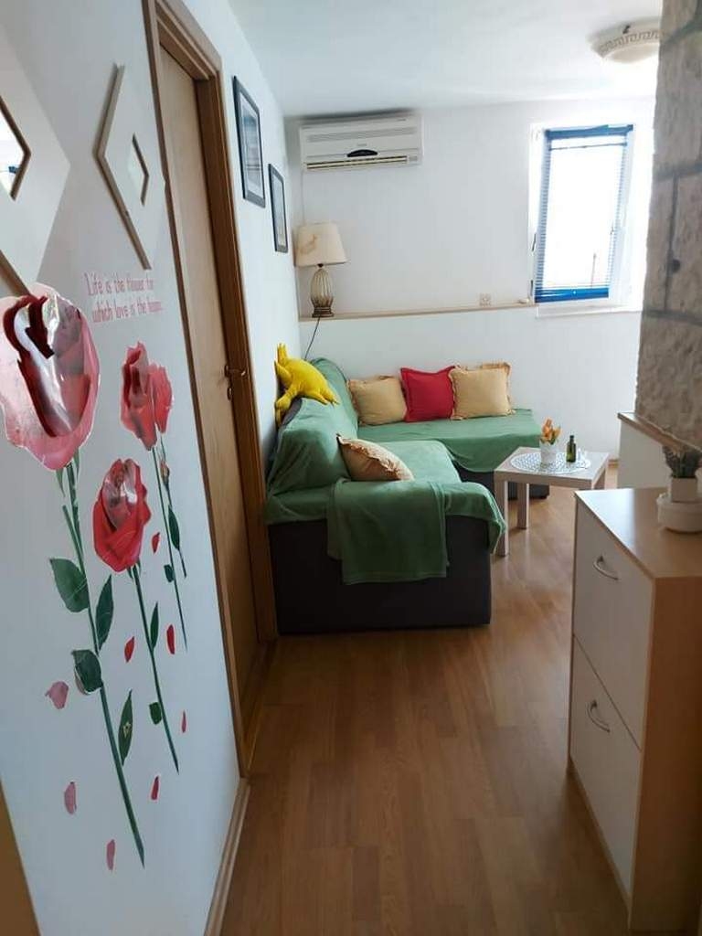 Apartment can accommodate 4 guests. Beds are situated in 1 sleeping rooms, but also in the living room, within 37m2. Guests can use a private terrace to enjoy the warm summer evenings. The apartment offers the sea view. This accommodation unit welcomes pets at no additional costs. INCLUDED IN THE PRICE: tourist tax, final cleaning, air-conditioning, parking, internet, pets, iron, ironing board, hairdryer. OBLIGATORY ADDITIONAL COSTS: short stay fee (surcharge depending on a number of booked nights: 30% - 1, 20% - 2, 10% - 3). The availability of additional services for your chosen dates of stay, as well as their prices (if none are listed) must be checked ahead of time. Any additional services not shown in the price calculation are payable directly to the property owner and only if used by the visitor.