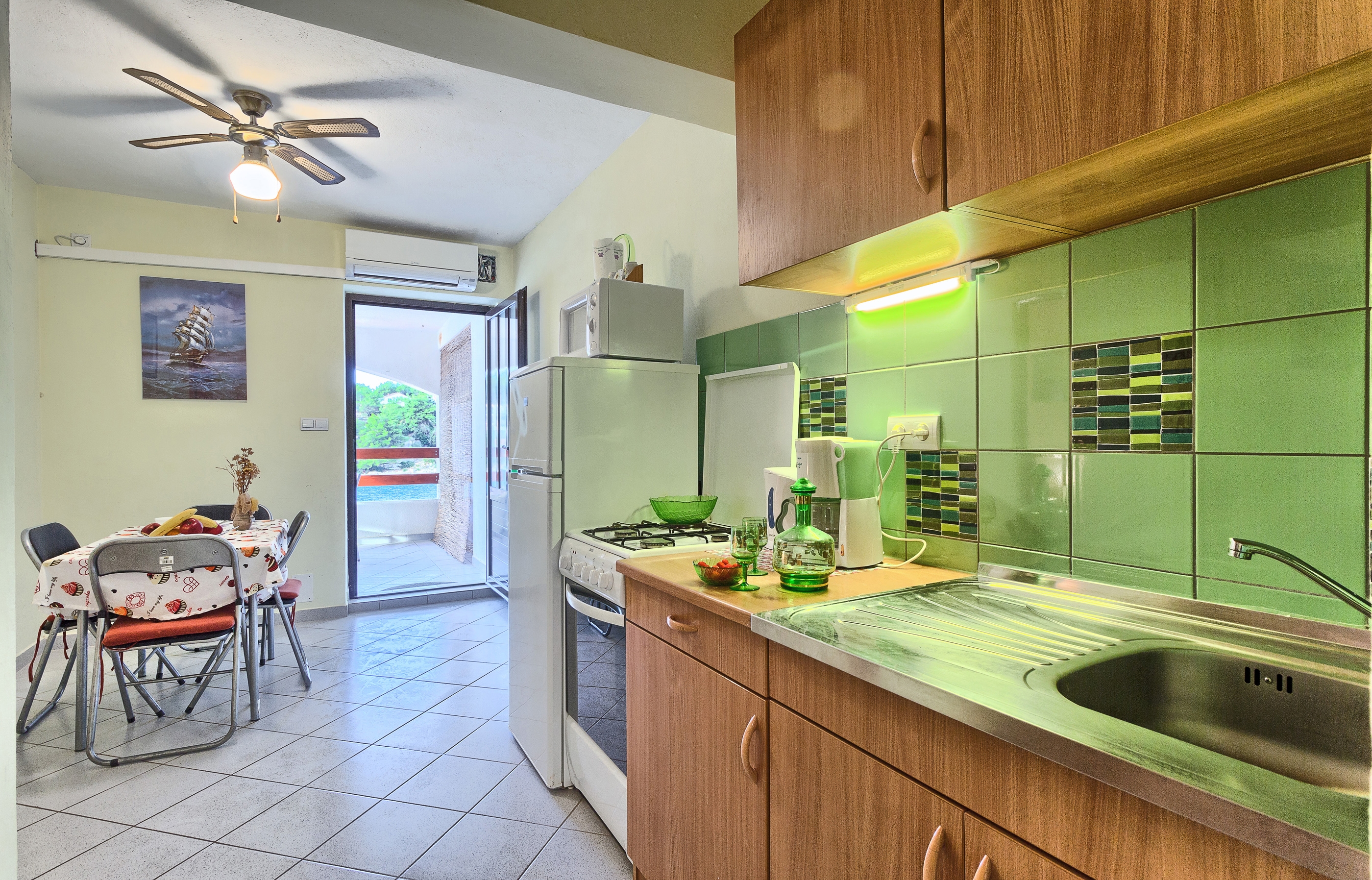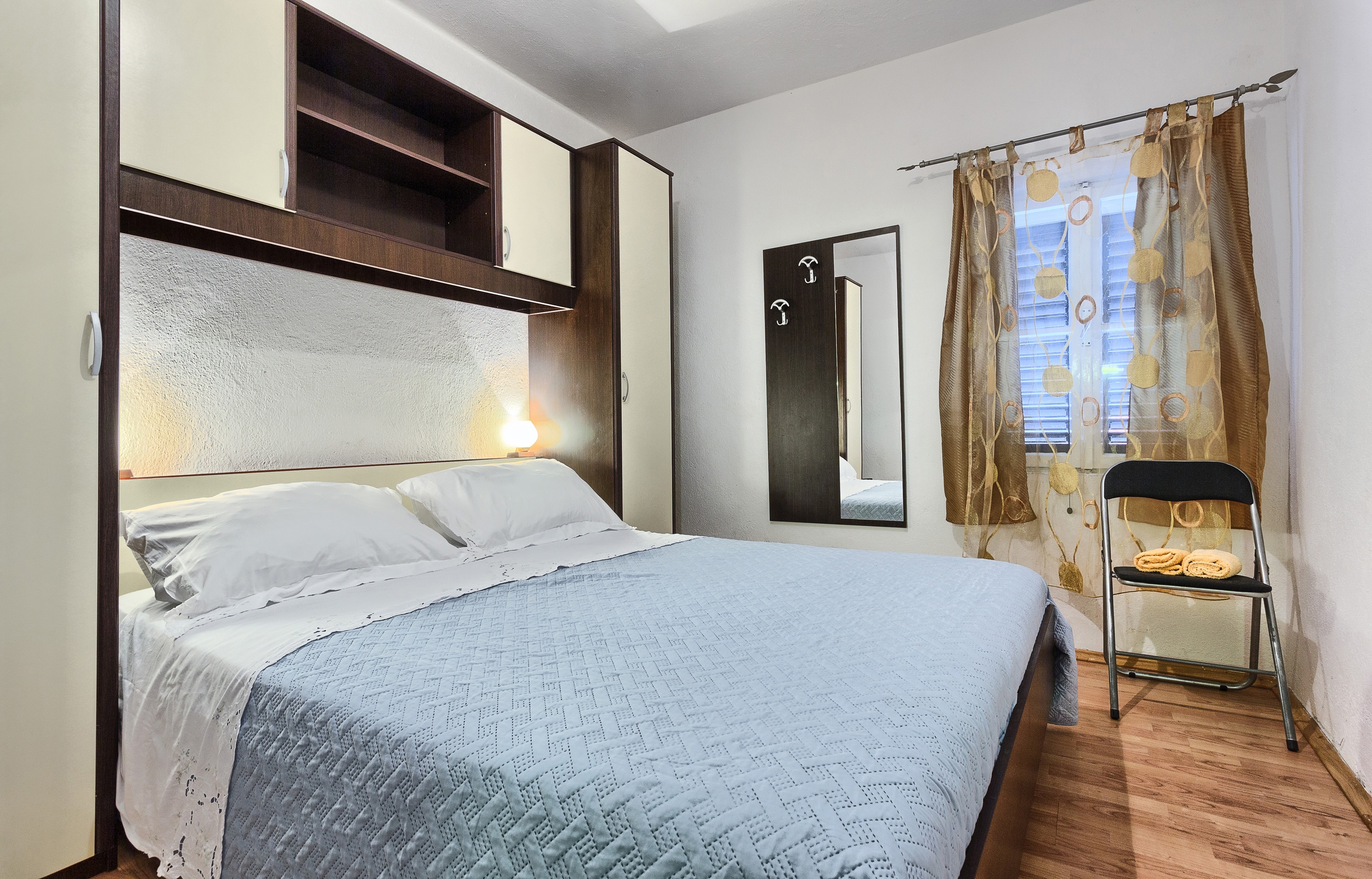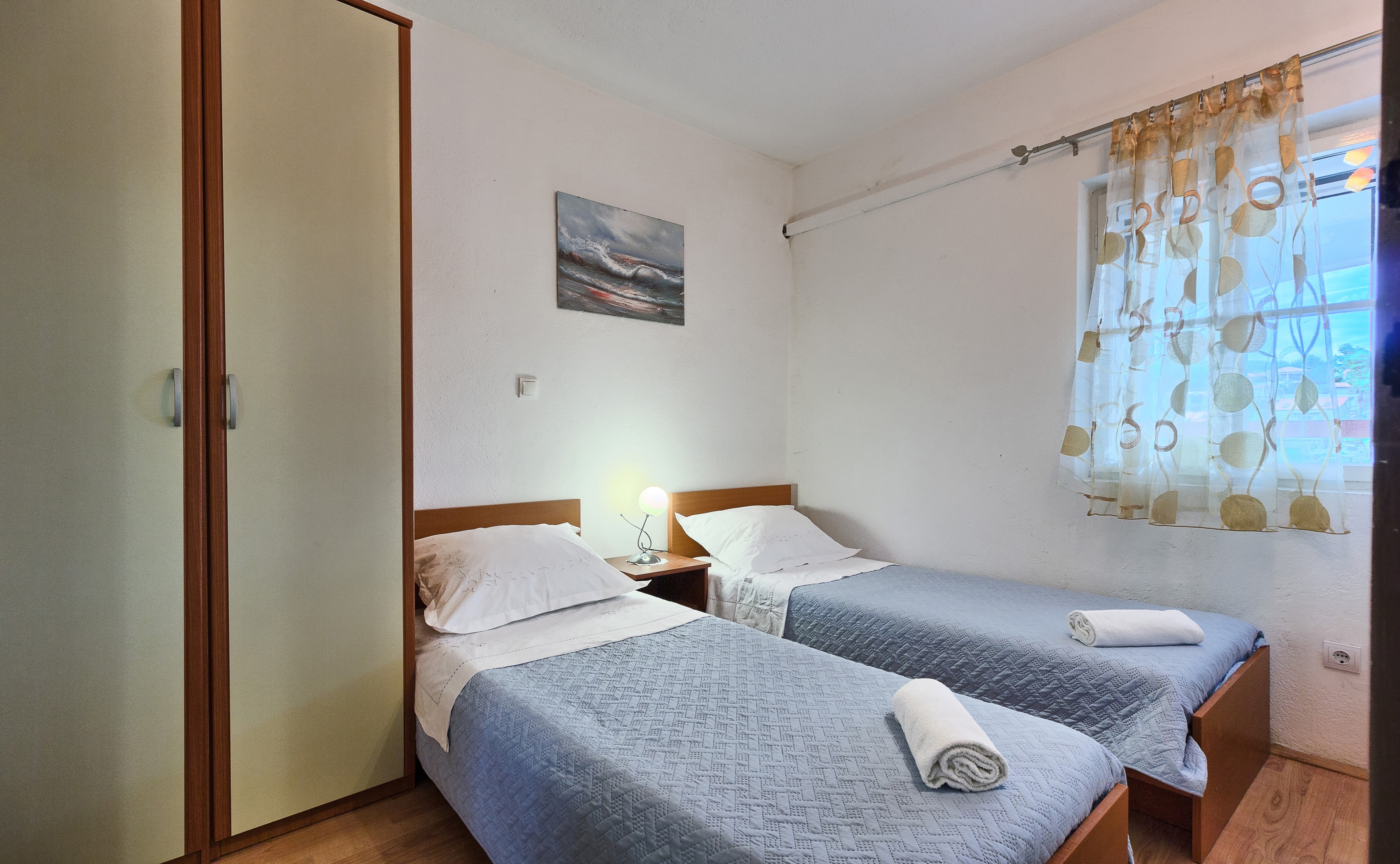 Apartment can accommodate 4 guests. Beds are situated in 2 sleeping rooms, within 32m2. Guests can use a private terrace to enjoy the warm summer evenings. The apartment offers the sea view. Food can be prepared using barbecue which is shared with other guests too. This accommodation unit welcomes pets at an additional charge. INCLUDED IN THE PRICE: tourist tax, final cleaning, air-conditioning, parking, internet, laundry, baby cot, iron, ironing board, hairdryer. OBLIGATORY ADDITIONAL COSTS: short stay fee (surcharge depending on a number of booked nights: 30% - 1, 20% - 2, 10% - 3). OPTIONAL ADDITIONAL COSTS: boat mooring (€10.00 per night), pets (€10.00 per night). The availability of additional services for your chosen dates of stay, as well as their prices (if none are listed) must be checked ahead of time. Any additional services not shown in the price calculation are payable directly to the property owner and only if used by the visitor.