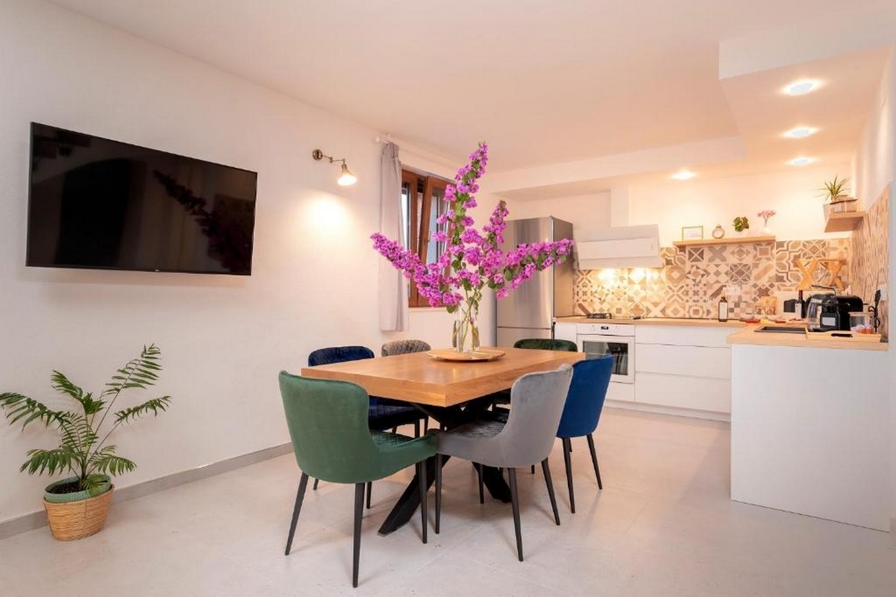 House can accommodate 4 guests. Beds are situated in 2 sleeping rooms, within 73m2. Guests can use a private terrace to enjoy the warm summer evenings. The house offers the sea view. For full enjoyment and relaxation there is a private barbecue for this accommodation guests only. Some of the rooms of the accommodation unit are not connected with the rest of the unit. INCLUDED IN THE PRICE: tourist tax, final cleaning, air-conditioning, parking, internet, iron, ironing board, hairdryer, portable barbecue. The availability of additional services for your chosen dates of stay, as well as their prices (if none are listed) must be checked ahead of time. Any additional services not shown in the price calculation are payable directly to the property owner and only if used by the visitor.