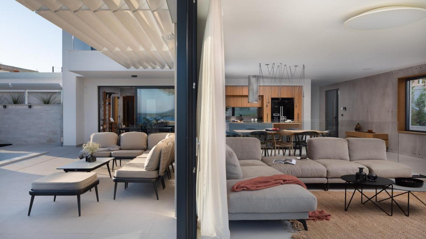 Villa with Sea View. This luxurious villa provides a pool with a view, a hot tub and a sauna. Boasting a private entrance, this air-conditioned villa comes with 4 living rooms, 8 separate bedrooms and 8 bathrooms with a walk-in shower and a bath. Guests will find a stovetop, a refrigerator, a dishwasher and kitchenware in the well-equipped kitchen. The villa also includes a barbecue. The spacious villa features a washing machine, soundproof walls, a tea and coffee maker, a flat-screen TV with streaming services, as well as sea views. The unit has 9 beds.