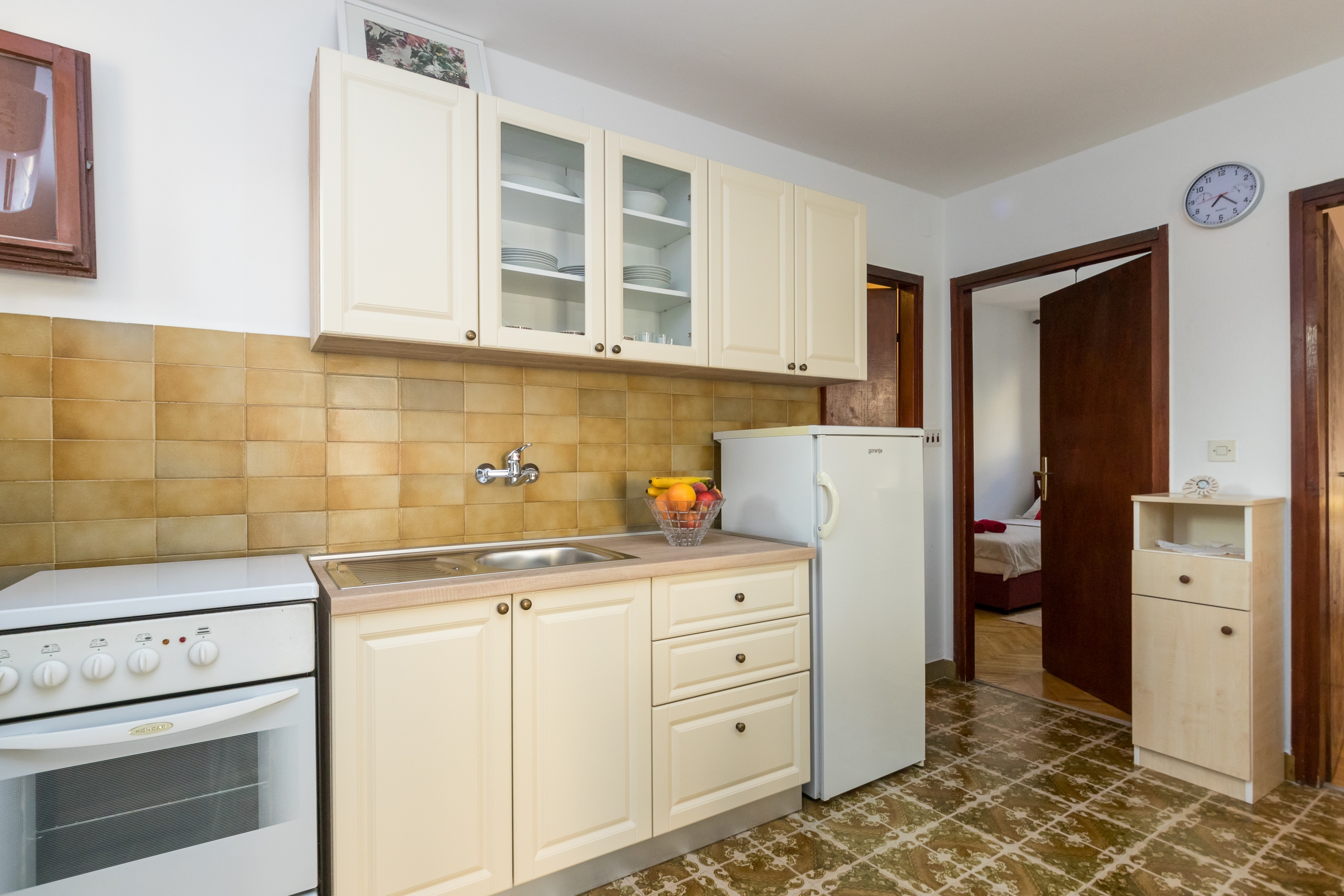 House 16086 in the town of Kaštel Štafilić, Kaštela - Central Dalmatia has accommodation units of type Apartment (1) and is 300 m away from the sea. The nearest beach to this accommodation is a pebble beach. You will be the houses only guests during your holiday, as there are no other rooms or apartments. The hosts will not be in the house for the duration of your holiday. The house owner is under no obligation to accept additional persons and pets that were not stated in the reservation request and it is necessary to report them in advance.AMENITIES Infield (Well-kept), Courtyard (100m2), Parking lot (Number of parking spaces: 2, Distance from the house: In the courtyard), WiFi Internet, Hairdryer, Iron, Ironing board LOCATION AND ACCESS Facility is situated near a local road Local road between the property and the beach Car access possible: Yes, Macadam road: 100 m, Narrow street: 50 m The house is located near a potential source of noise The facility is partly surrounded by vegetation DISTANCES Sea: 300 m Beach: 300 m Center: 6.5 km Shop: 300 m Urgent medical care: 3.5 km Pharmacy: 1.3 km Exchange office: 2.5 km ATMBank machine: 750 m Tourist info: 3 km Airport: 1.7 km Gas station: 2.5 km