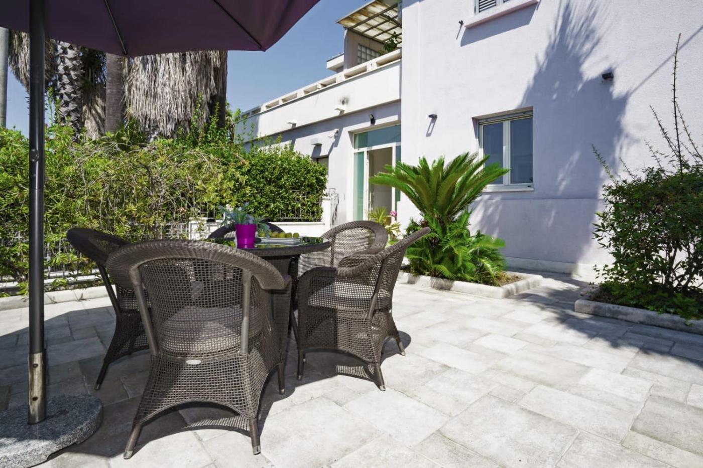 The spacious apartment has 2 bedrooms, 2 bathrooms, bed linen, towels, a flat-screen TV with streaming services, a dining area, a fully equipped kitchen, and a terrace with sea views. A private entrance leads gueststhe apartment,they can enjoy some wine or champagne and fruits. This apartment is non-smoking and soundproof.