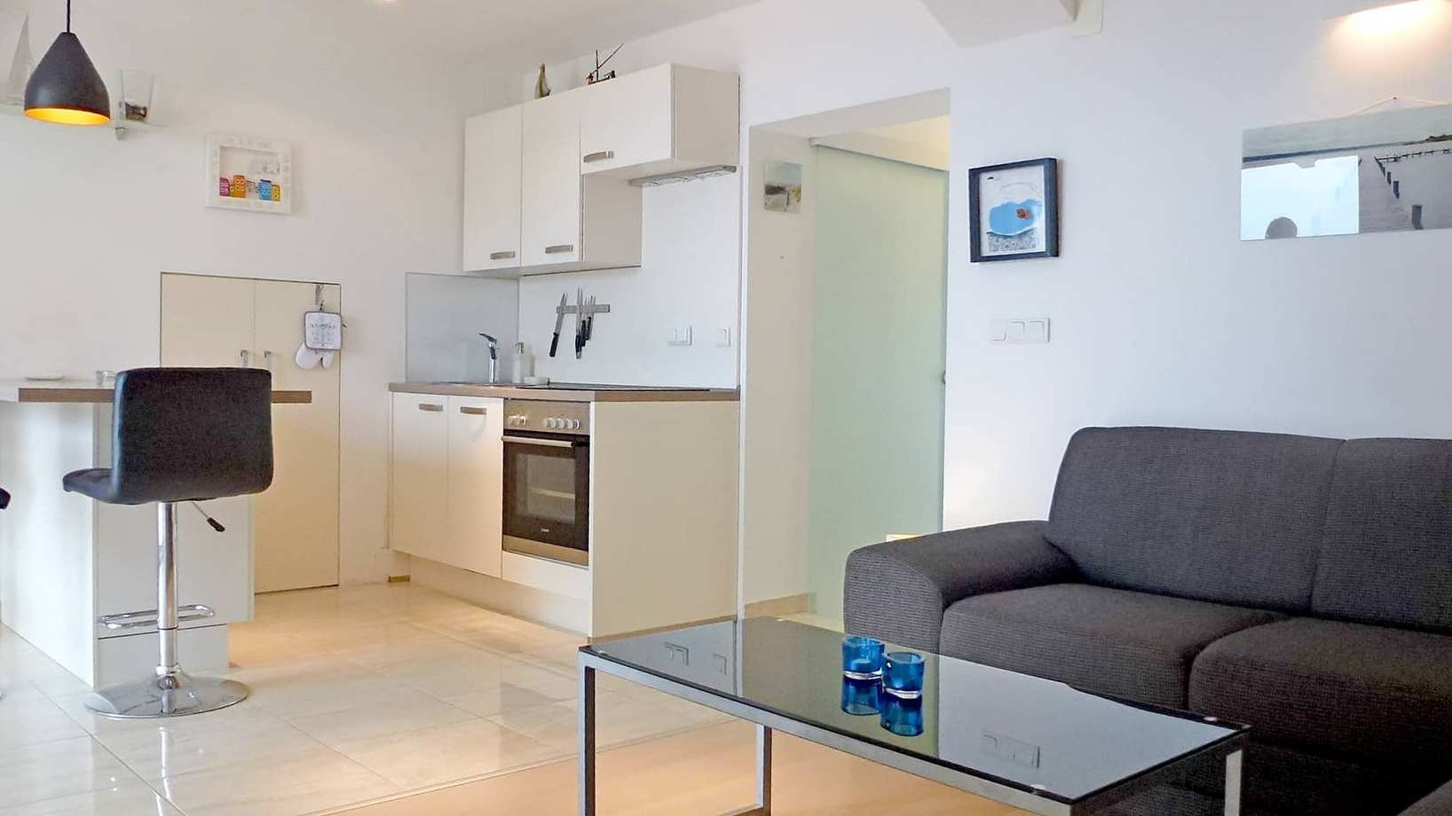 Apartment can accommodate 2 guests. Beds are situated in 1 sleeping rooms, within 30m2. Guests can use a private terrace to enjoy the warm summer evenings. The apartment offers the sea view. INCLUDED IN THE PRICE: tourist tax, final cleaning, air-conditioning, parking, internet. The availability of additional services for your chosen dates of stay, as well as their prices (if none are listed) must be checked ahead of time. Any additional services not shown in the price calculation are payable directly to the property owner and only if used by the visitor.