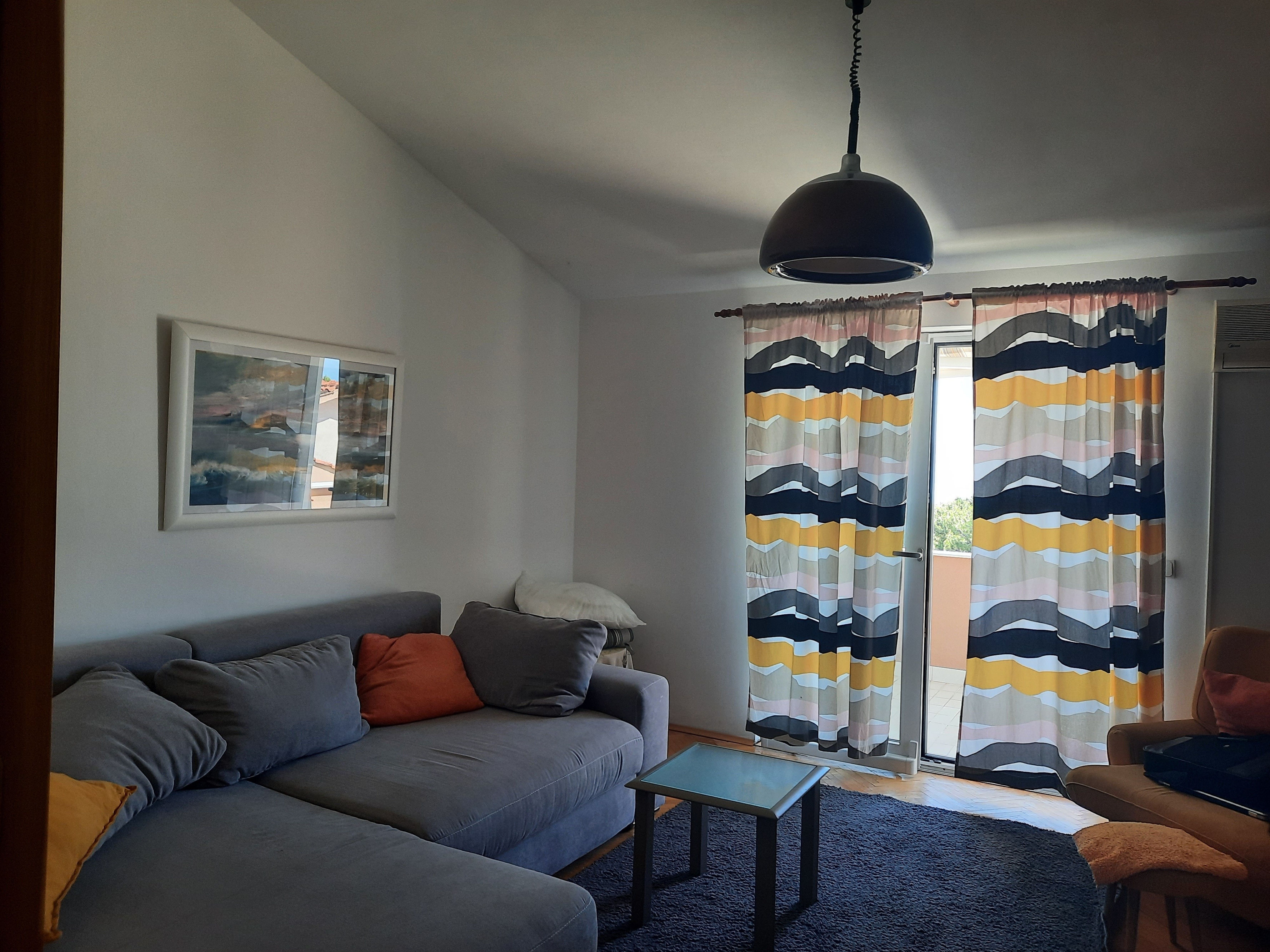 Apartment can accommodate 6 guests. Beds are situated in 2 sleeping rooms, within 79m2. Guests can use a private terrace to enjoy the warm summer evenings. The apartment offers the sea view. Food can be prepared using barbecue which is shared with other guests too. This accommodation unit welcomes pets at an additional charge. INCLUDED IN THE PRICE: tourist tax, final cleaning, parking, internet, baby cot, hairdryer. OBLIGATORY ADDITIONAL COSTS: short stay fee (surcharge depending on a number of booked nights: 30% - 1, 20% - 2, 10% - 3). OPTIONAL ADDITIONAL COSTS: air-conditioning (€5.00 per night), laundry (€4.00 washing), pets (€7.00 per night). The availability of additional services for your chosen dates of stay, as well as their prices (if none are listed) must be checked ahead of time. Any additional services not shown in the price calculation are payable directly to the property owner and only if used by the visitor.