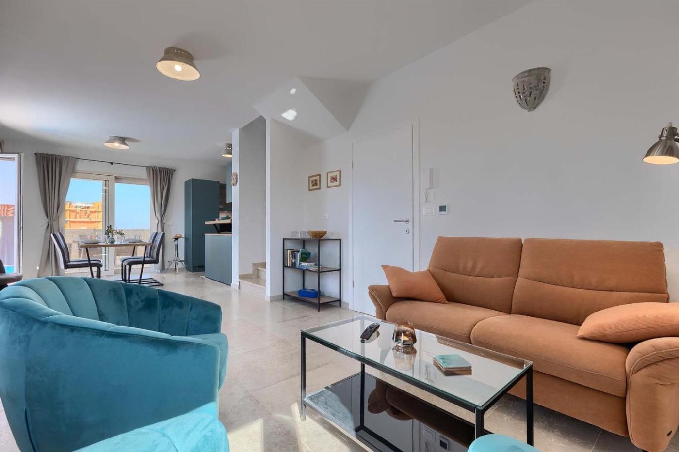 The villa with a terrace and sea views features 2 bedrooms, a living room, a TV, an equipped kitchen with a dishwasher and an oven, and 2 bathrooms with a walk-in shower. Towels and bed linen are featured in the villa. There is also a seating area and a fireplace.