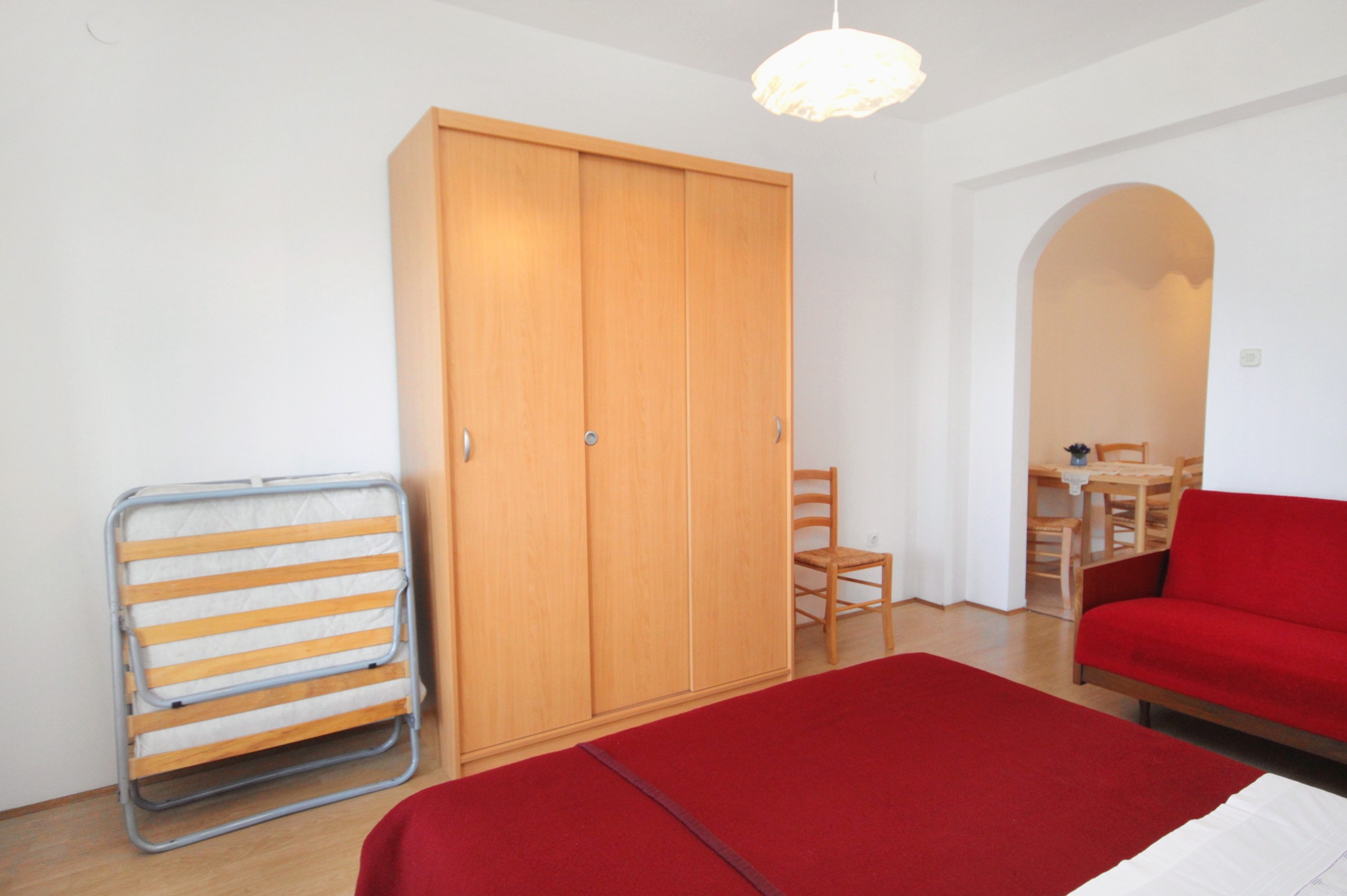 Studio flat can accommodate 3 guests. Beds are situated in 1 sleeping rooms, within 30m2. Guests can use a private terrace to enjoy the warm summer evenings. The studio offers the sea view. INCLUDED IN THE PRICE: tourist tax, final cleaning, parking, garage, internet, sunshade. OBLIGATORY ADDITIONAL COSTS: short stay fee (surcharge depending on a number of booked nights: 30% - 1, 20% - 2, 10% - 3). The availability of additional services for your chosen dates of stay, as well as their prices (if none are listed) must be checked ahead of time. Any additional services not shown in the price calculation are payable directly to the property owner and only if used by the visitor.
