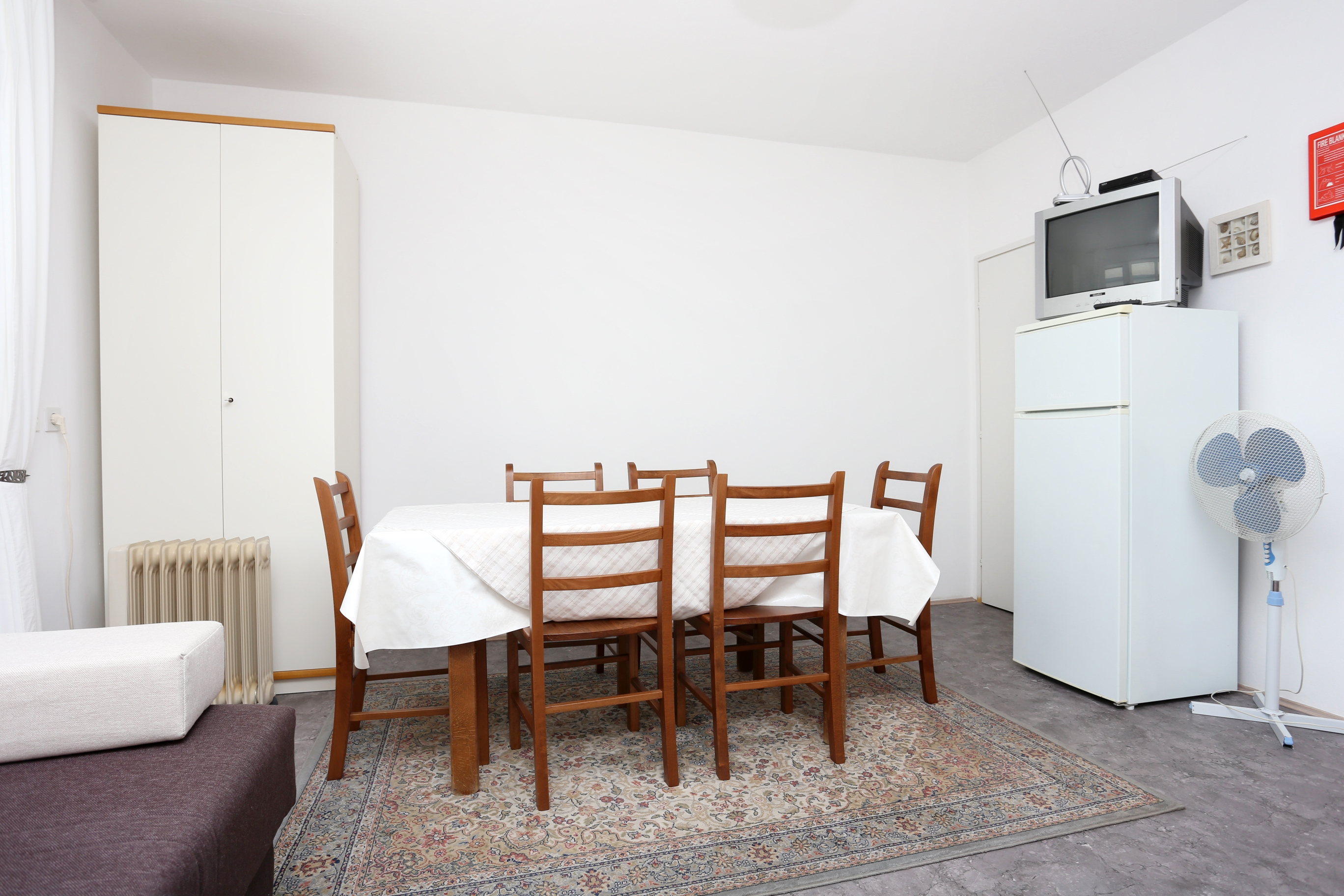 Apartment can accommodate 10 guests. Beds are situated in 4 sleeping rooms, but also in the dining room, within 119m2. Guests can use a private terrace to enjoy the warm summer evenings. The apartment offers the sea view. Food can be prepared using barbecue which is shared with other guests too. Notthe rooms of the booked accommodation unit are connectedone whole. Some of the rooms of the accommodation unit are not connected with the rest of the unit. INCLUDED IN THE PRICE: tourist tax, final cleaning, parking, internet, iron, ironing board, hairdryer, portable barbecue. OPTIONAL ADDITIONAL COSTS: air-conditioning (€10.00 per night). The availability of additional services for your chosen dates of stay, as well as their prices (if none are listed) must be checked ahead of time. Any additional services not shown in the price calculation are payable directly to the property owner and only if used by the visitor.