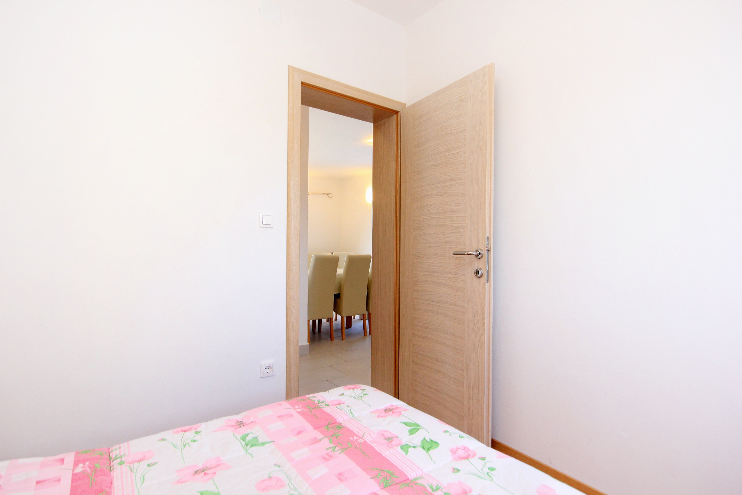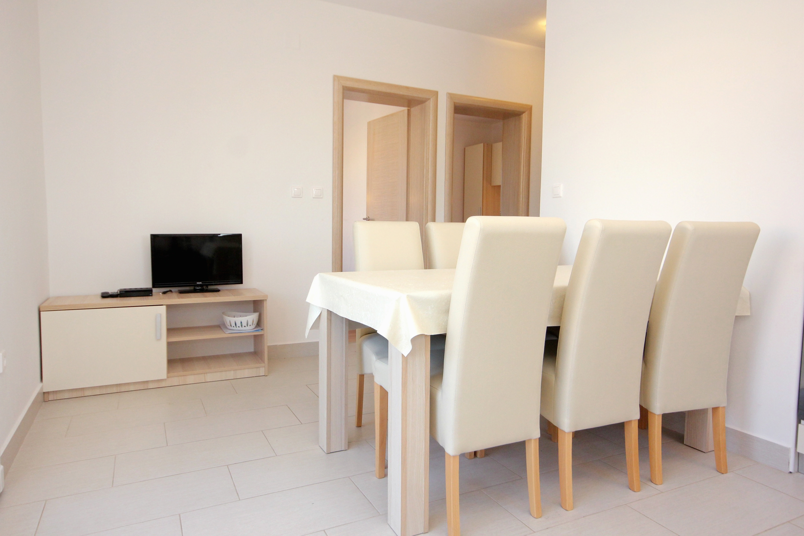 Apartment can accommodate 6 guests. Beds are situated in 2 sleeping rooms, but also in the dining room, within 37m2. Guests can use a private terrace to enjoy the warm summer evenings. Food can be prepared using barbecue which is shared with other guests too. INCLUDED IN THE PRICE: tourist tax, final cleaning, air-conditioning, parking, internet, baby cot, iron, ironing board, hairdryer. OBLIGATORY ADDITIONAL COSTS: short stay fee (surcharge depending on a number of booked nights: 30% - 1, 20% - 2, 10% - 3). The availability of additional services for your chosen dates of stay, as well as their prices (if none are listed) must be checked ahead of time. Any additional services not shown in the price calculation are payable directly to the property owner and only if used by the visitor. Discounts to the base price: free day 14=13 (for reservations of 14 or more days you get one free day for the stay until 31122026).
