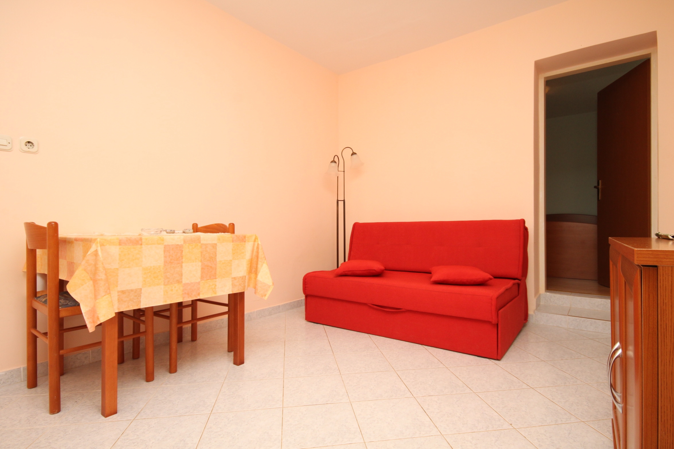 Apartment can accommodate 4 guests. Beds are situated in 1 sleeping rooms, but also in the dining room, within 29m2. Guests can use a private terrace to enjoy the warm summer evenings. The apartment offers the sea view. Food can be prepared using barbecue which is shared with other guests too. For the booked accommodation unit the deposit is paid directly to the owner upon check-in (deposit amount is displayed on the website) INCLUDED IN THE PRICE: tourist tax, final cleaning, air-conditioning, parking, internet. OBLIGATORY ADDITIONAL COSTS: deposit (€150.00 one-time payment), short stay fee (surcharge depending on a number of booked nights: 30% - 1, 20% - 2, 10% - 3). OPTIONAL ADDITIONAL COSTS: laundry (€10.00 washing), additional bed (€10.00 per night). The availability of additional services for your chosen dates of stay, as well as their prices (if none are listed) must be checked ahead of time. Any additional services not shown in the price calculation are payable directly to the property owner and only if used by the visitor.