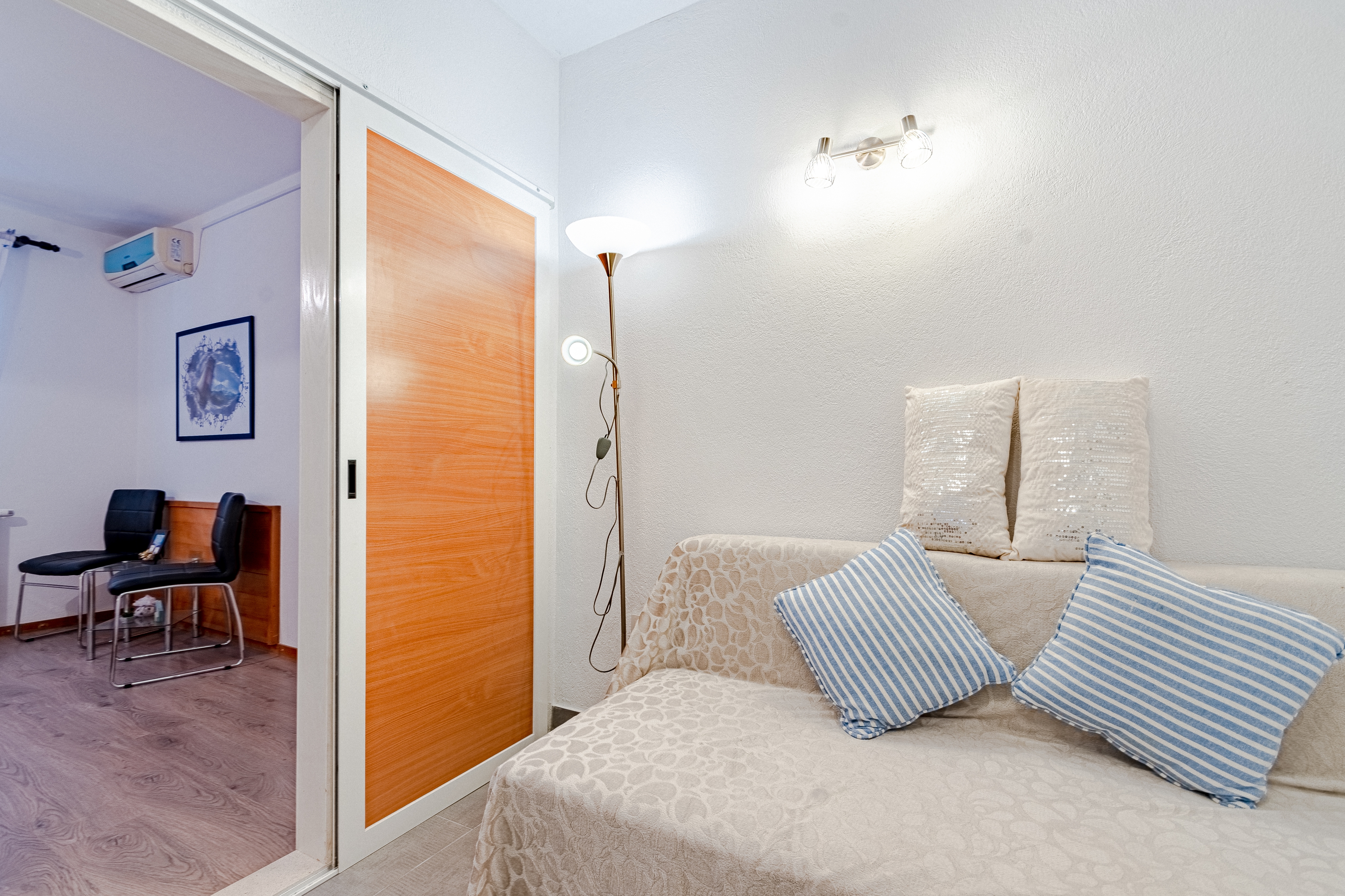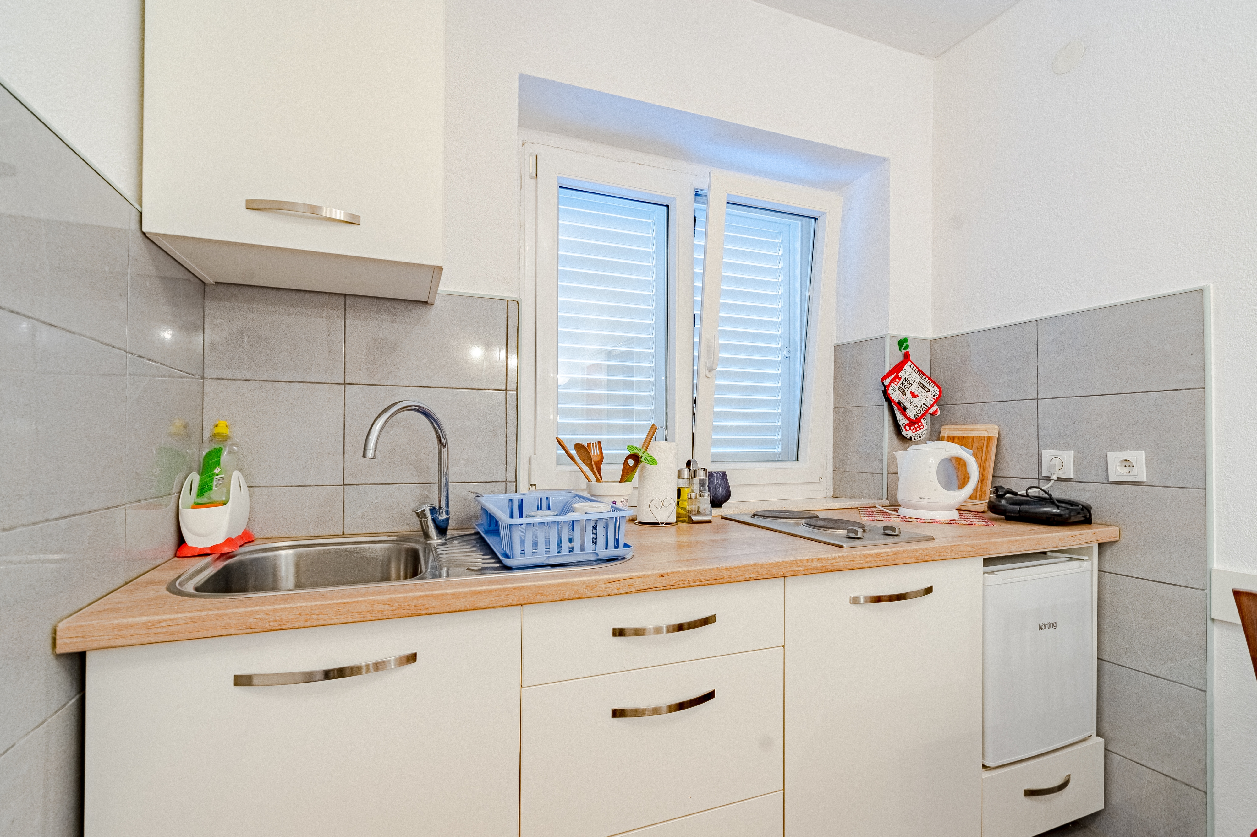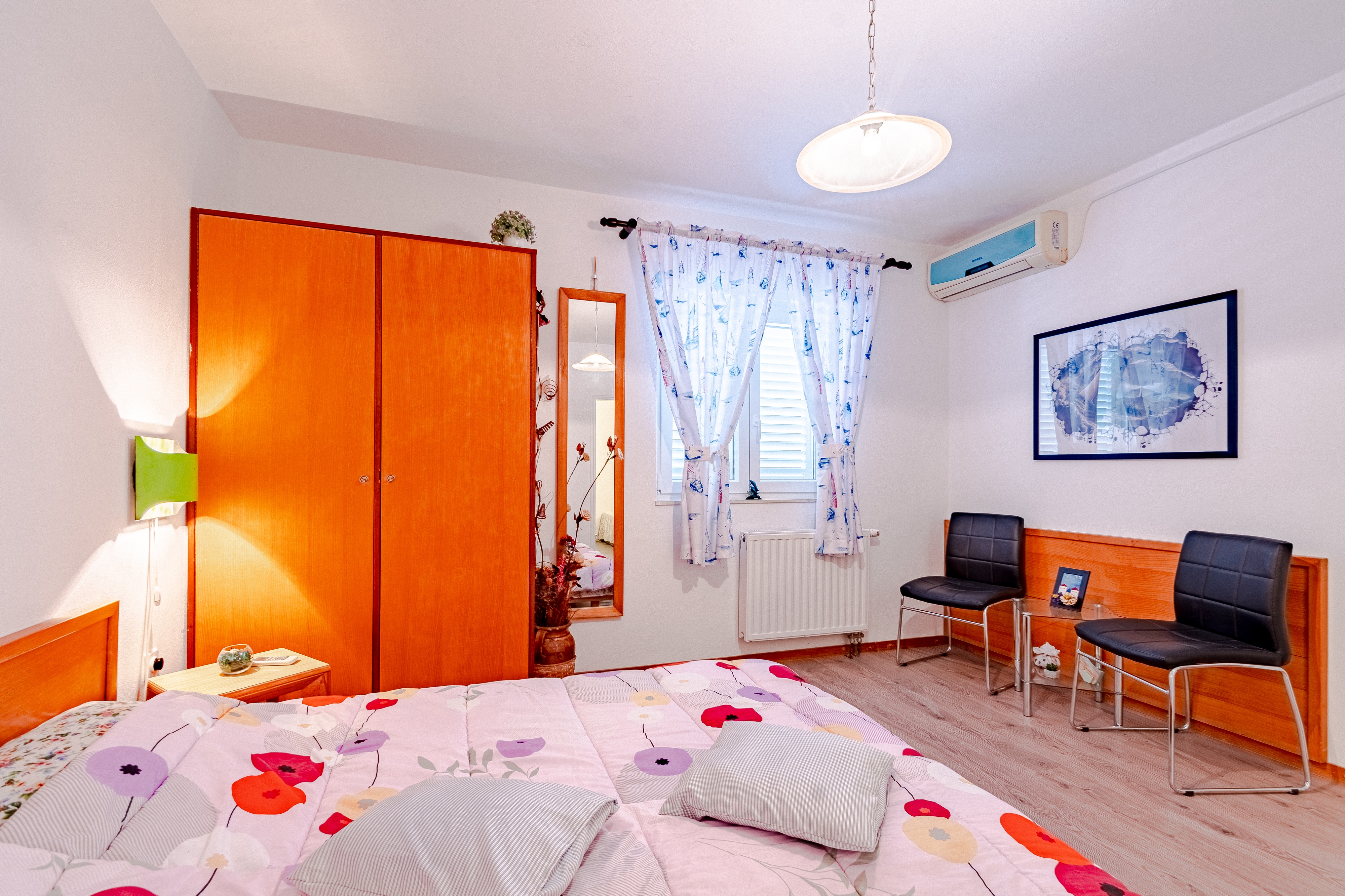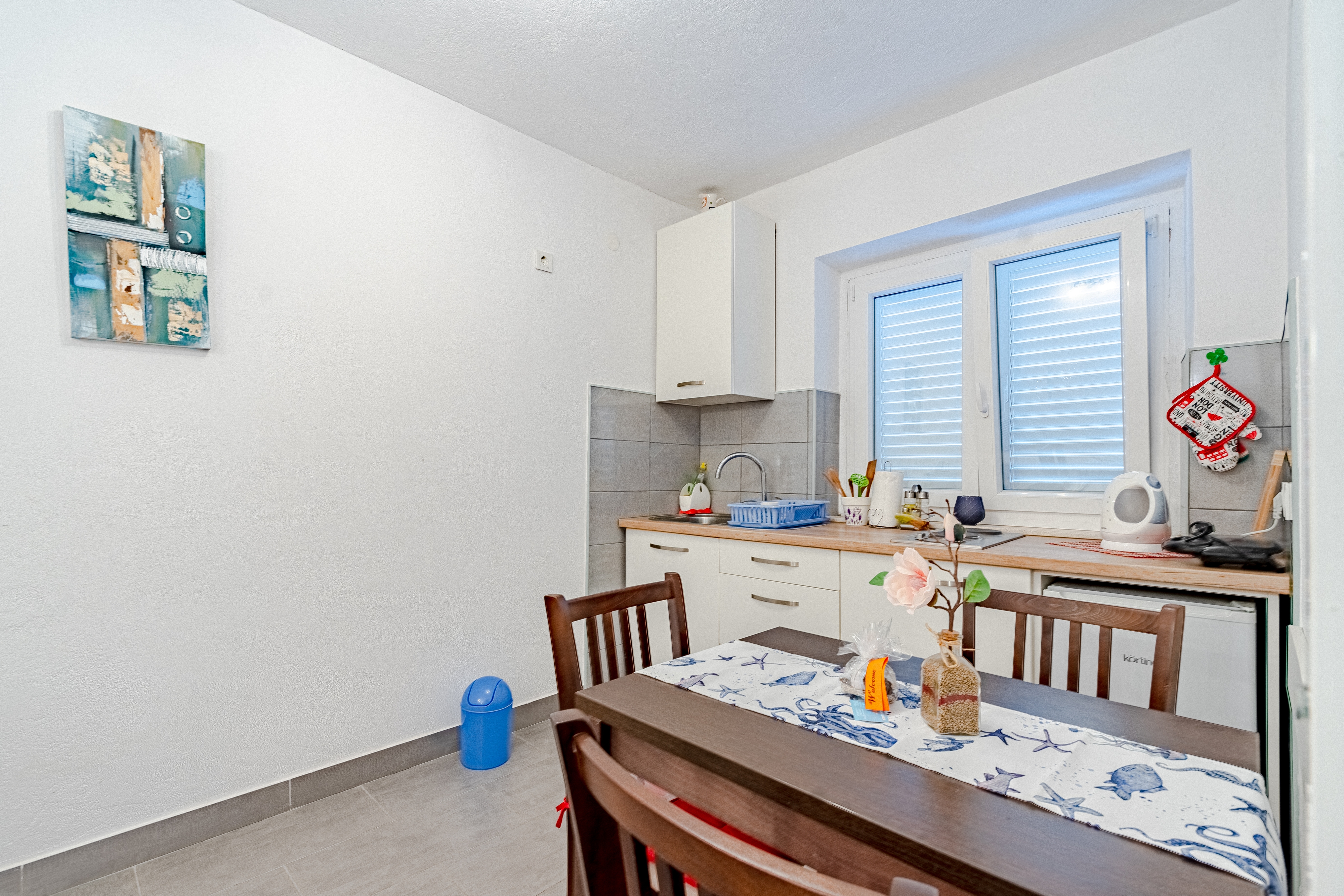 Studio flat can accommodate 3 guests. Beds are situated in 1 sleeping rooms, but also in the dining room, within 24m2. Food can be prepared using barbecue which is shared with other guests too. This accommodation unit welcomes pets at no additional costs. There is no balcony or terrace in the reserved accommodation unit. INCLUDED IN THE PRICE: tourist tax, final cleaning, air-conditioning, parking, internet, pets, iron, ironing board, hairdryer, portable barbecue. OBLIGATORY ADDITIONAL COSTS: short stay fee (surcharge depending on a number of booked nights: 30% - 1, 20% - 2, 10% - 3). OPTIONAL ADDITIONAL COSTS: additional bed (€15.00 per night). The availability of additional services for your chosen dates of stay, as well as their prices (if none are listed) must be checked ahead of time. Any additional services not shown in the price calculation are payable directly to the property owner and only if used by the visitor.