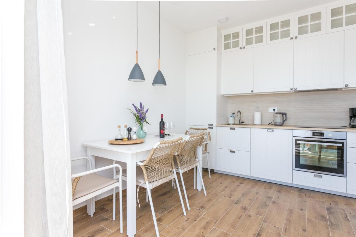 The air-conditioned apartment is composed of 1 separate bedroom, a living room, a fully equipped kitchen with a dishwasher and oven, and 1 bathroom. For added privacy, the accommodation features a private entrance.
