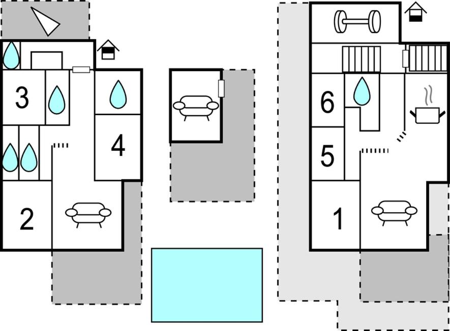 Six-Bedroom Holiday Home. This holiday home boasts a private pool, hot tub and fireplace. Featuring a private entrance, this air-conditioned holiday home is comprised of 3 living rooms, 6 separate bedrooms and 5 bathrooms with a bath and a shower. Guests will find a stovetop, a refrigerator, a dishwasher and kitchenware in the well-equipped kitchen. The holiday home also has a barbecue. The spacious holiday home offers a washing machine, a tea and coffee maker, a dining area, a safe deposit box, as well as a TV. The unit offers 8 beds and 2 futons.