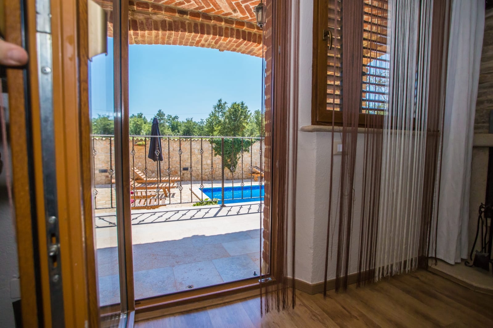 Accommodation units of type Apartment (1) can be found in house 14167 in the town of Nova Vas, Poreč - Istria. The house is 6.5 km away from the sea and is categorized as "Facilities with a swimming pool". The nearest beach to this accommodation is a concrete slabs beach. During your holiday, there may be other guests in the houses other apartments. The hosts will be in the house during your holiday. The house owner is under no obligation to accept additional persons and pets that were not stated in the reservation request and it is necessary to report them in advance.AMENITIES Infield (Well-kept), Courtyard (570m2, Area suitable for children, Sitting area), Parking lot (Number of parking spaces: 5, Distance from the house: In the courtyard), Pool: shared, Dimensions: 8m x 3m x 1.4m, Type of water: Freshwater, Barbecue: shared, WiFi Internet, Hairdryer, Iron, Baby cot LOCATION AND ACCESS The facility is not located near the road Main road between the property and the beach Car access possible: Yes, Macadam road: 200 m The facility is situated in quiet surroundings The facility is partly surrounded by vegetation DISTANCES Sea: 6.5 km Beach: 6.5 km Center: 8 km Shop: 900 m Urgent medical care: 8 km Pharmacy: 5 km Exchange office: 5 km ATMBank machine: 5.5 km Tourist info: 5 km Gas station: 8 km Farmers market: 8 km