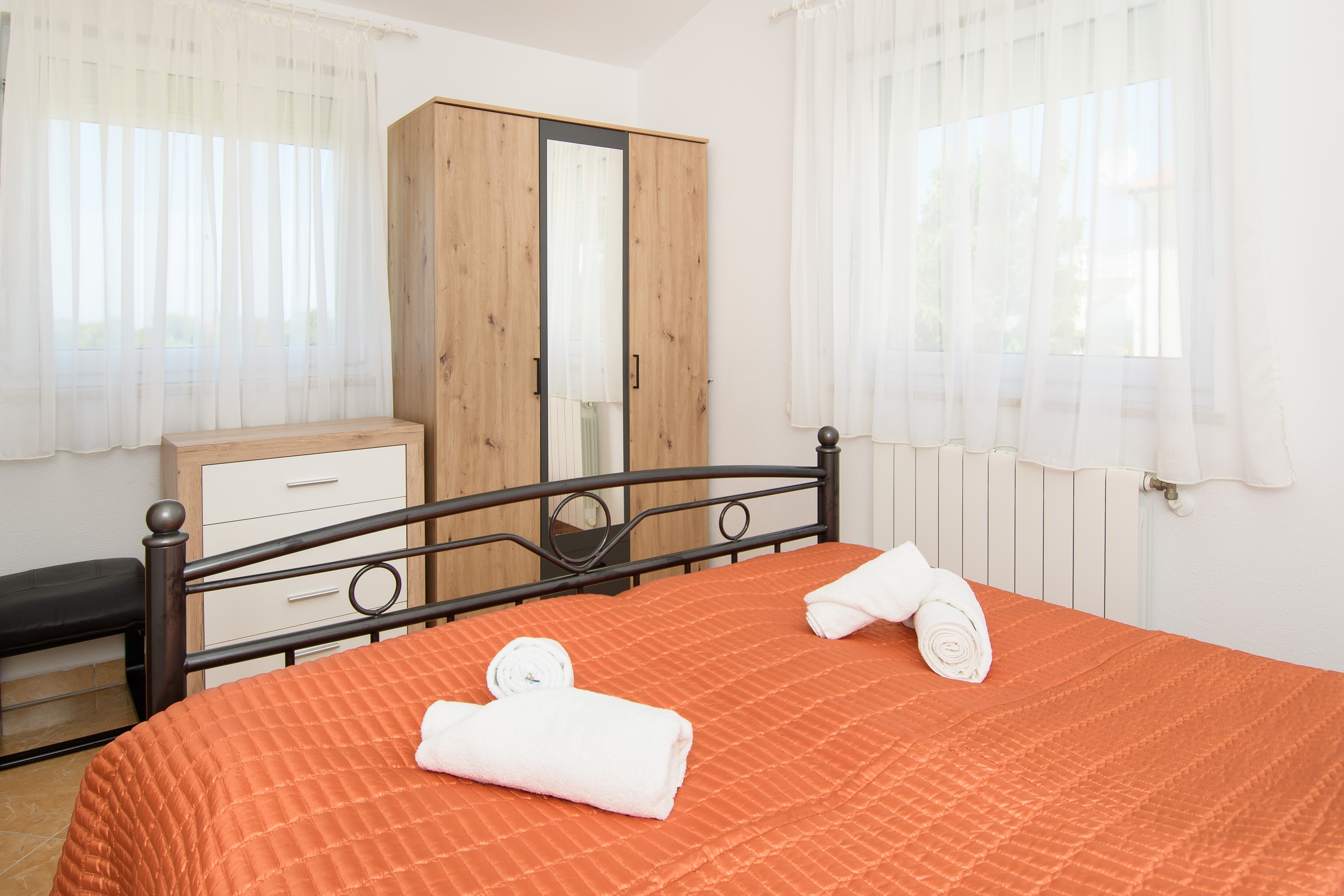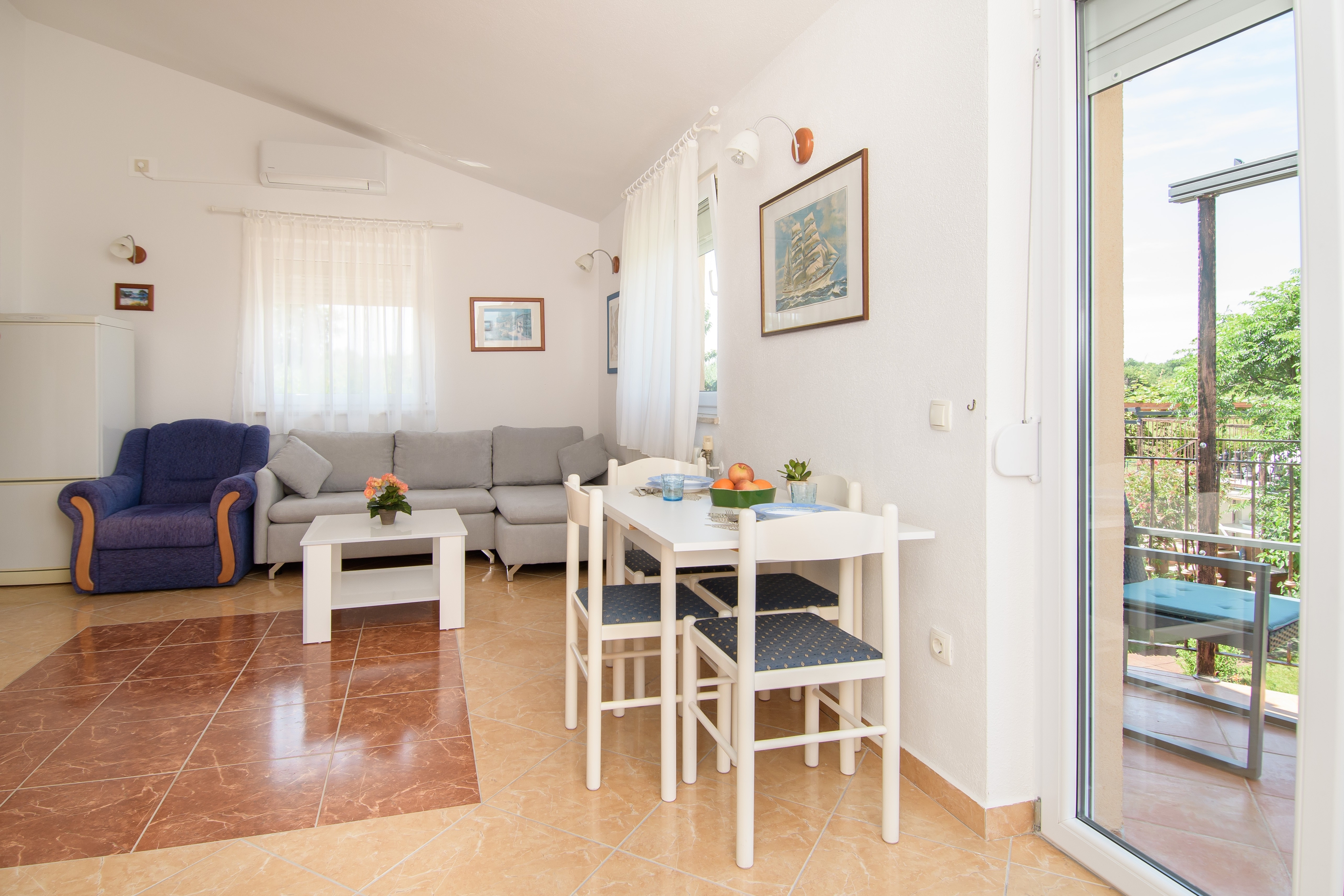 Apartment can accommodate 3 guests. Beds are situated in 1 sleeping rooms, but also in the living room, within 36m2. Guests can use a private terrace to enjoy the warm summer evenings. The apartment offers the sea view. Food can be prepared using barbecue which is shared with other guests too. Shared pool is on disposal during stay. INCLUDED IN THE PRICE: tourist tax, final cleaning, air-conditioning, central heating, pool, parking, internet, baby cot, additional bed, hairdryer, portable barbecue, sunshade, sunchairs. OPTIONAL ADDITIONAL COSTS: laundry (€2.00 washing). The availability of additional services for your chosen dates of stay, as well as their prices (if none are listed) must be checked ahead of time. Any additional services not shown in the price calculation are payable directly to the property owner and only if used by the visitor.