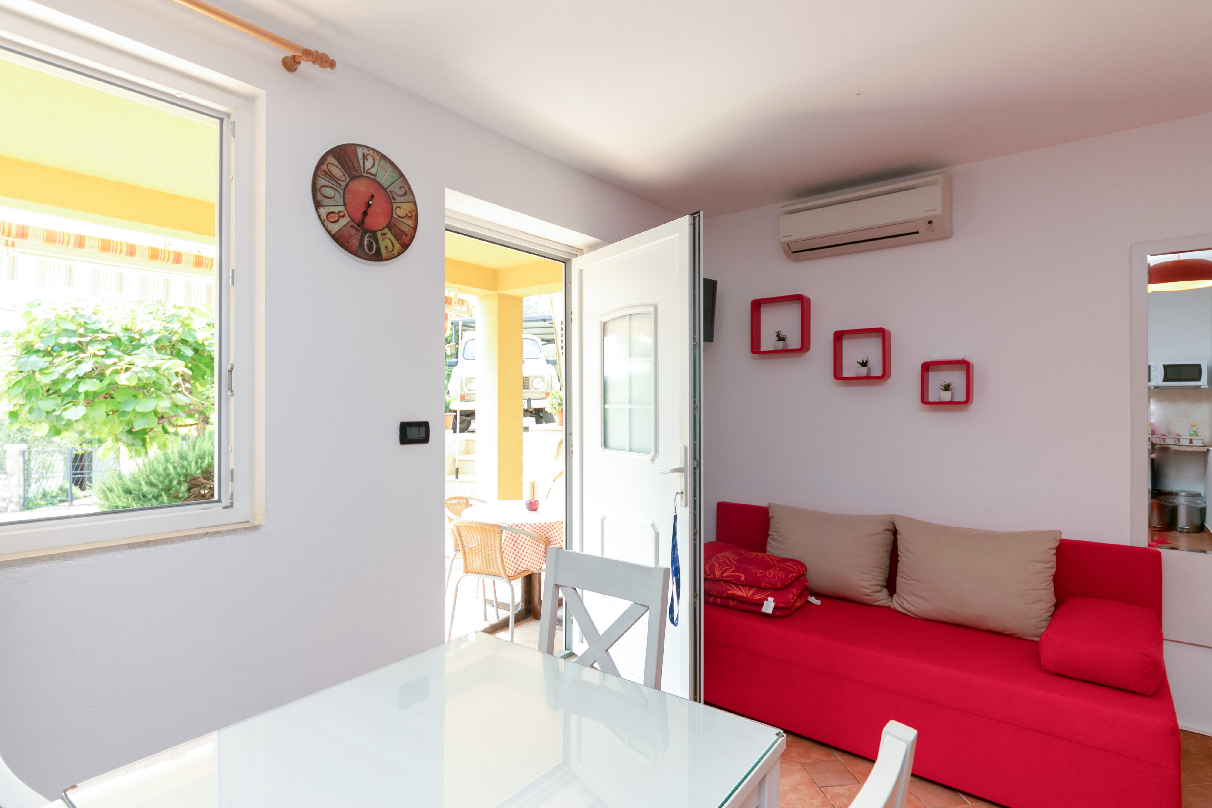 House 14164 in the town of Vrsar, Poreč - Istria has accommodation units of type Studio flat (1), Apartment (1) and is 300 m away from the sea. The nearest beach to this accommodation is a pebble beach. As the house is subdividedmultiple apartments, other guests may be present during your stay. The hosts also reside in the house. The house owner is under no obligation to accept additional persons and pets that were not stated in the reservation request and it is necessary to report them in advance.AMENITIES Infield (Well-kept), Courtyard (120m2), Parking lot (Number of parking spaces: 2, Distance from the house: In the courtyard), WiFi Internet, Hairdryer, Iron, Ironing board LOCATION AND ACCESS Facility is situated near a local road Local road between the property and the beach Car access possible: Yes, Narrow street: 30 m The facility is situated in relatively quiet surroundings DISTANCES Sea: 300 m Beach: 650 m Center: 10.5 km Shop: 160 m Urgent medical care: 10 km Pharmacy: 350 m Exchange office: 250 m ATMBank machine: 280 m Tourist info: 210 m
