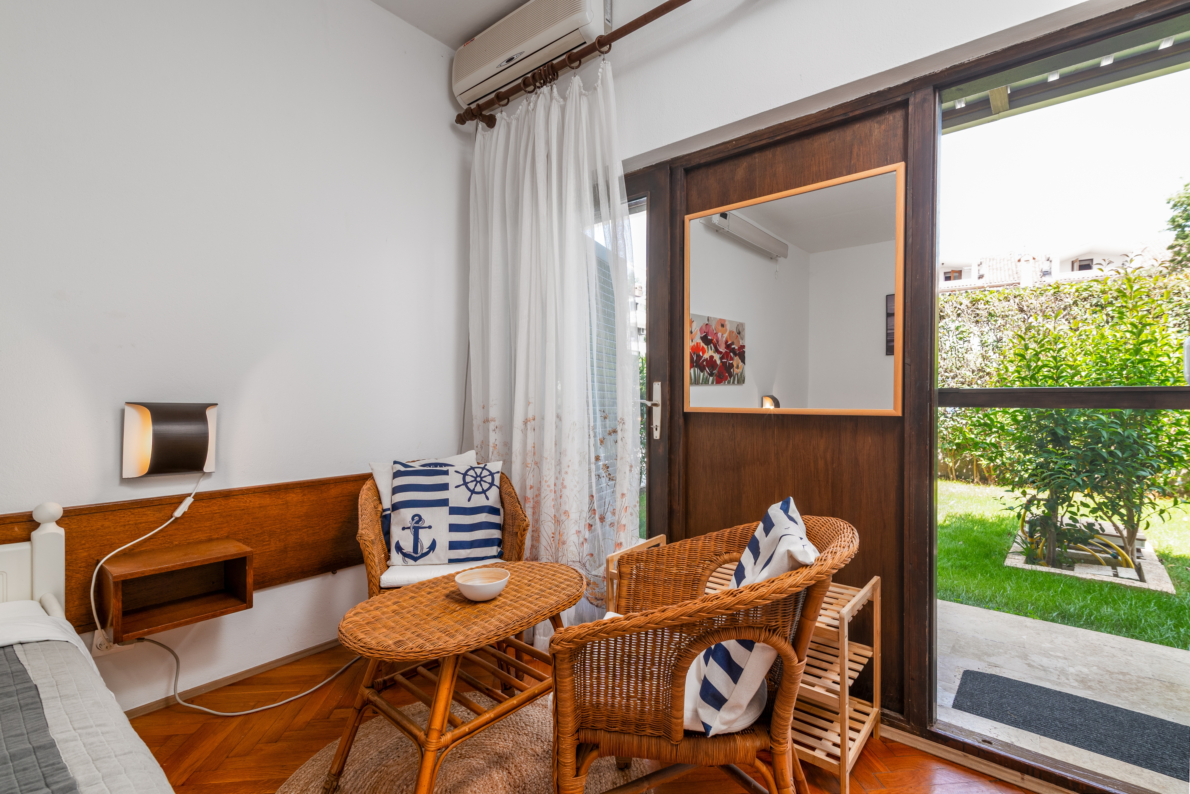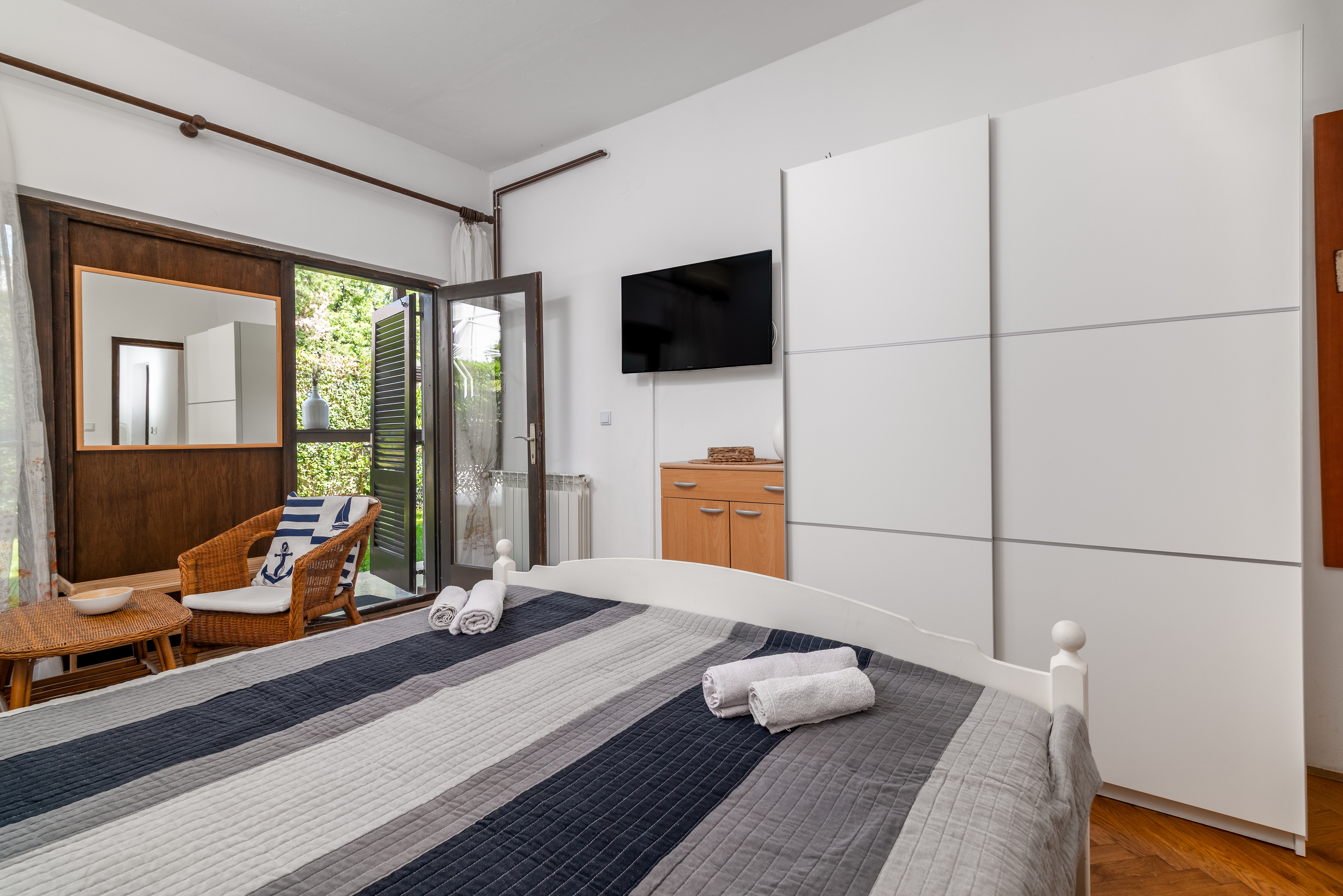 Apartment can accommodate 3 guests. Beds are situated in 1 sleeping rooms, within 34m2. Guests can use a private terrace to enjoy the warm summer evenings. Food can be prepared using barbecue which is shared with other guests too. This accommodation unit welcomes pets at an additional charge. INCLUDED IN THE PRICE: tourist tax, final cleaning, air-conditioning, central heating, parking, internet, iron, ironing board, hairdryer. OPTIONAL ADDITIONAL COSTS: pets (€5.00 per night). The availability of additional services for your chosen dates of stay, as well as their prices (if none are listed) must be checked ahead of time. Any additional services not shown in the price calculation are payable directly to the property owner and only if used by the visitor.