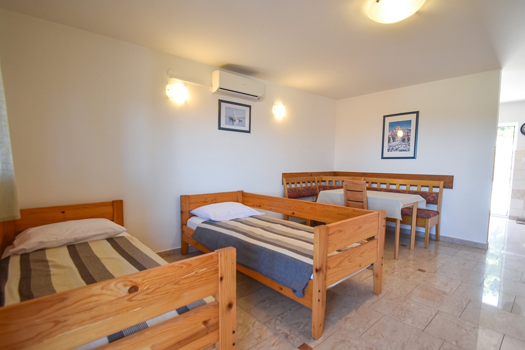 House 14134 in the town of Banjol, Rab - Kvarner has accommodation units of type Apartment (2), Studio flat (1) and is 300 m away from the sea. The nearest beach to this accommodation is a sand beach. Other guests may be found in this houses other apartments during your stay. During your holiday, your hosts will also be present in the house. The house owner is under no obligation to accept additional persons and pets that were not stated in the reservation request and it is necessary to report them in advance.AMENITIES Infield (Well-kept), Courtyard (500m2), Parking lot (Number of parking spaces: 4, Distance from the house: In the courtyard), Barbecue: shared, WiFi Internet, Laundry service, Hairdryer, Iron, Ironing board LOCATION AND ACCESS Facility is situated near a local road Local road between the property and the beach Car access possible: Yes The facility is situated in relatively quiet surroundings DISTANCES Sea: 300 m Beach: 300 m Center: 1.8 km Shop: 800 m Urgent medical care: 2.1 km Pharmacy: 1.9 km Exchange office: 1.7 km ATMBank machine: 1.2 km Tourist info: 1.7 km