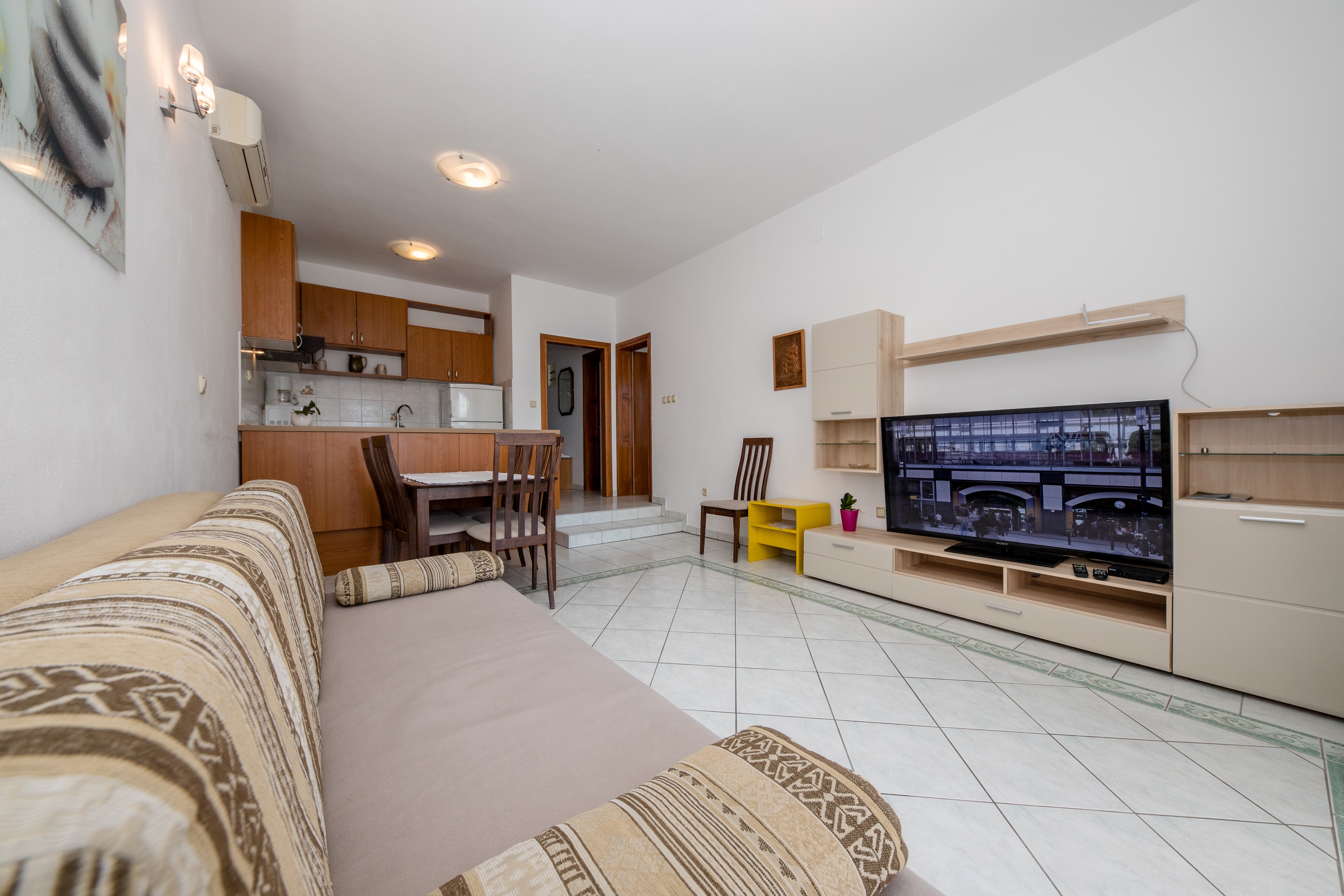 Apartment can accommodate 3 guests. Beds are situated in 2 sleeping rooms, within 55m2. Guests can use a private terrace to enjoy the warm summer evenings. The apartment offers the sea view. Food can be prepared using barbecue which is shared with other guests too. This accommodation unit welcomes pets at an additional charge. INCLUDED IN THE PRICE: tourist tax, final cleaning, air-conditioning, parking, internet, portable barbecue, sunshade, sunchairs. OBLIGATORY ADDITIONAL COSTS: short stay fee (surcharge depending on a number of booked nights: 30% - 1, 20% - 2, 10% - 3). OPTIONAL ADDITIONAL COSTS: laundry (€5.00 washing), boat (€160.00 per night), boat mooring (€20.00 per night), pets (€5.00 per night). The availability of additional services for your chosen dates of stay, as well as their prices (if none are listed) must be checked ahead of time. Any additional services not shown in the price calculation are payable directly to the property owner and only if used by the visitor.