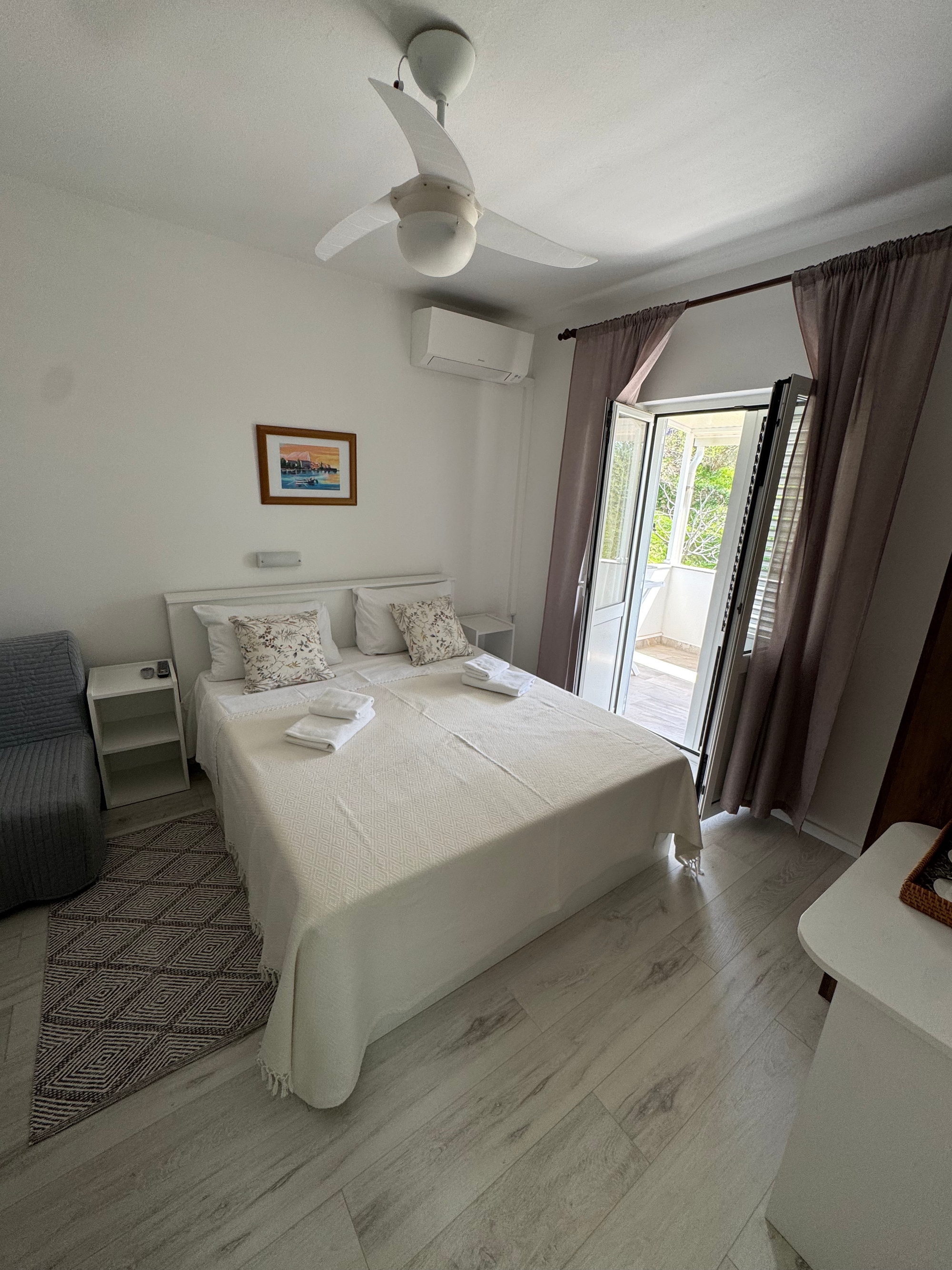 Room can accommodate 2 guests. Beds are situated in 1 sleeping rooms, within 16m2. Guests can use a private terrace to enjoy the warm summer evenings. The room offers the sea view. Reserved accommodation unit is a room with its own bathroom and there is no usage of kitchen. INCLUDED IN THE PRICE: tourist tax, final cleaning, air-conditioning, parking, internet, hairdryer. OPTIONAL ADDITIONAL COSTS: 1 bed for children (€15.00 personnight). The availability of additional services for your chosen dates of stay, as well as their prices (if none are listed) must be checked ahead of time. Any additional services not shown in the price calculation are payable directly to the property owner and only if used by the visitor. Discounts to the base price: free day 14=13 (for reservations of 14 or more days you get one free day for the stay until 31122026).