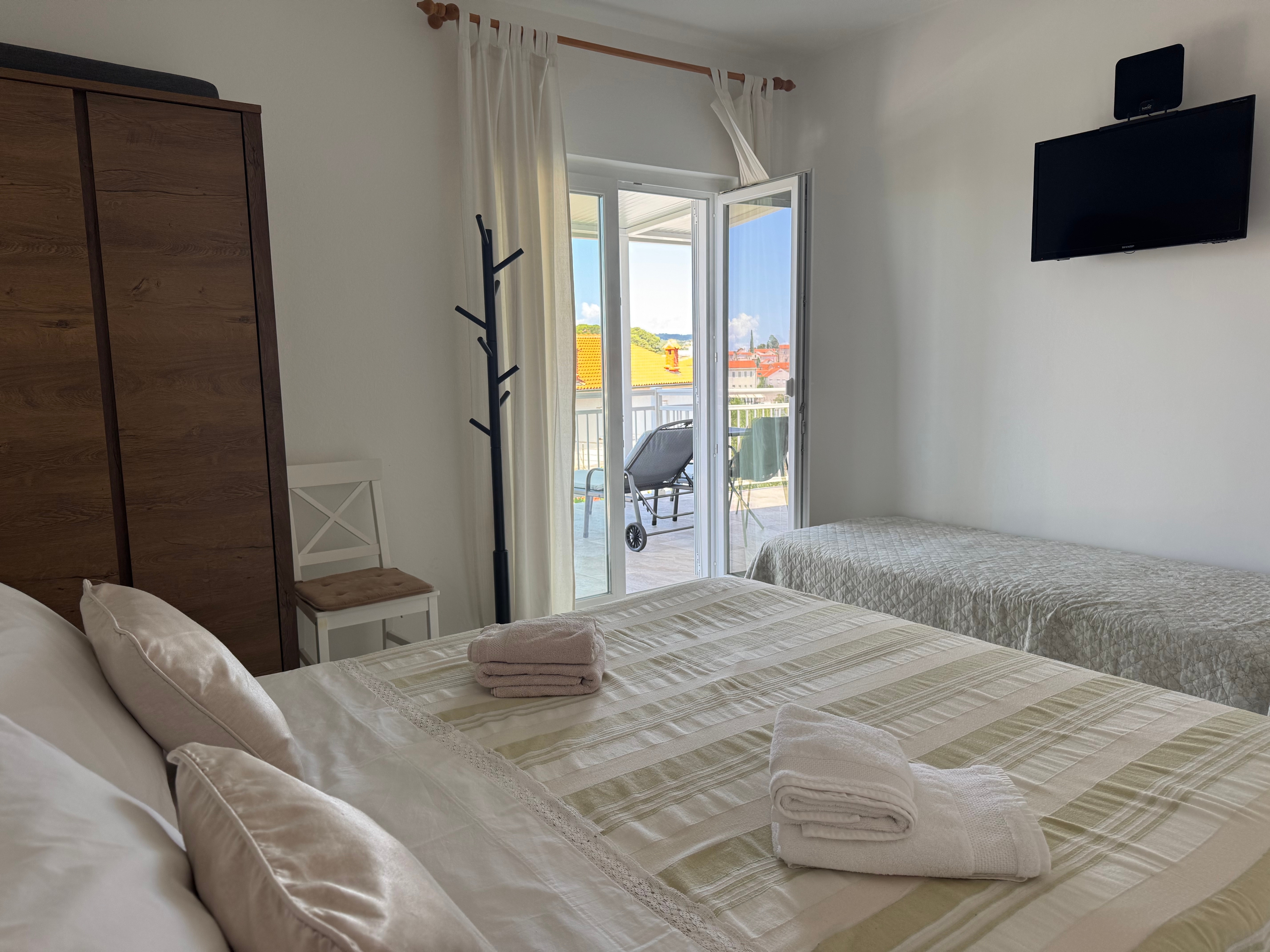 Room can accommodate 3 guests. Beds are situated in 1 sleeping rooms, within 18m2. Guests can use a private terrace to enjoy the warm summer evenings. The room offers the sea view. Reserved accommodation unit is a room with its own bathroom and there is no usage of kitchen. INCLUDED IN THE PRICE: tourist tax, final cleaning, air-conditioning, parking, internet, hairdryer. The availability of additional services for your chosen dates of stay, as well as their prices (if none are listed) must be checked ahead of time. Any additional services not shown in the price calculation are payable directly to the property owner and only if used by the visitor. Discounts to the base price: free day 14=13 (for reservations of 14 or more days you get one free day for the stay until 31122026).