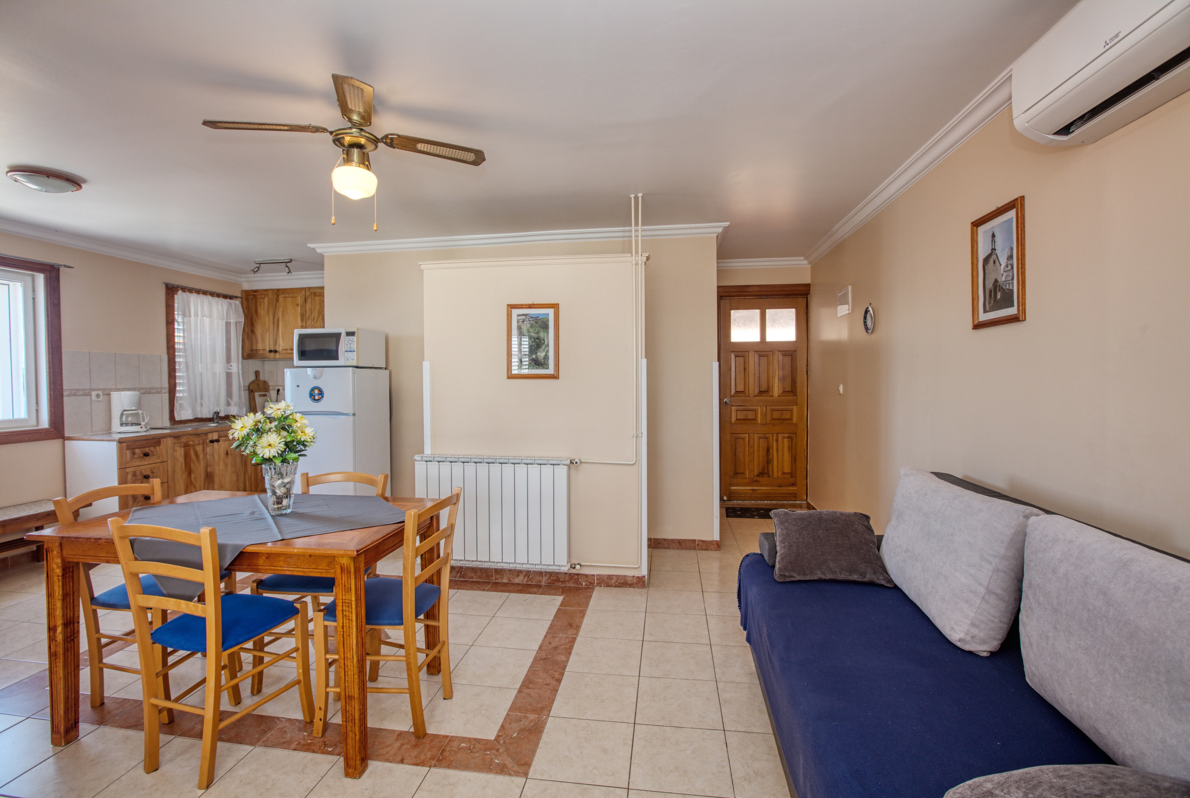 Apartment can accommodate 4 guests. Beds are situated in 1 sleeping rooms, but also in the living room, within 41m2. Guests can use a private terrace to enjoy the warm summer evenings. The apartment offers the sea view. Food can be prepared using barbecue which is shared with other guests too. INCLUDED IN THE PRICE: tourist tax, final cleaning, air-conditioning, parking, internet, boat mooring, hairdryer, sunshade, sunchairs. OPTIONAL ADDITIONAL COSTS: laundry (€5.00 washing). The availability of additional services for your chosen dates of stay, as well as their prices (if none are listed) must be checked ahead of time. Any additional services not shown in the price calculation are payable directly to the property owner and only if used by the visitor. Discounts to the base price: free day 14=13 (for reservations of 14 or more days you get one free day for the stay until 31122026).