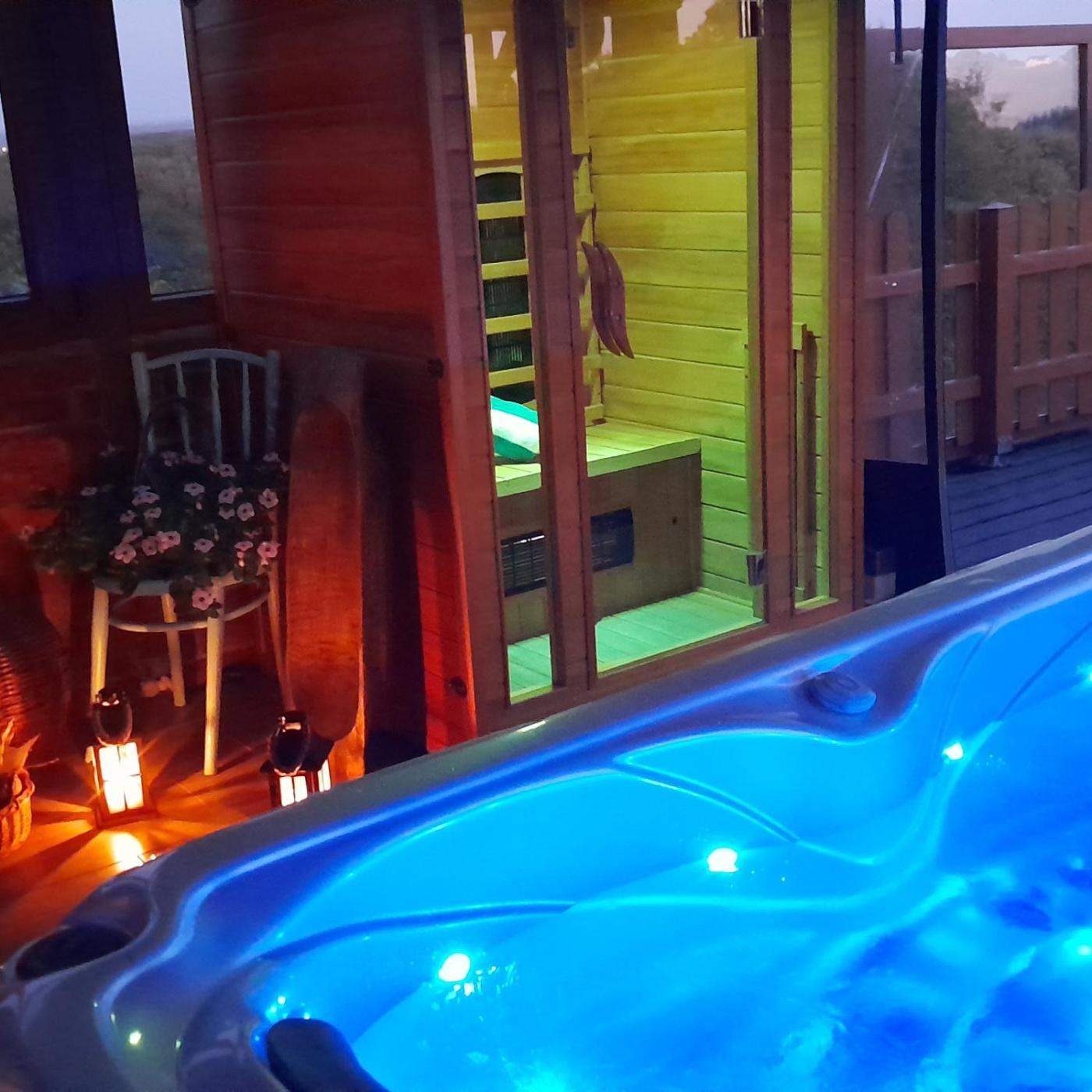 Two-Bedroom House. This holiday homes special features are the hot tub and the fireplace. Featuring a private entrance, this air-conditioned holiday home comprises 1 living room, 2 separate bedrooms and 1 bathroom with a walk-in shower and a hairdryer. Guests will find a stovetop, a refrigerator, a dishwasher and kitchenware in the fully equipped kitchen. The holiday home also provides guests with a barbecue. Boasting a terrace with garden views, this holiday home also provides soundproof walls and a flat-screen TV. The unit offers 4 beds.