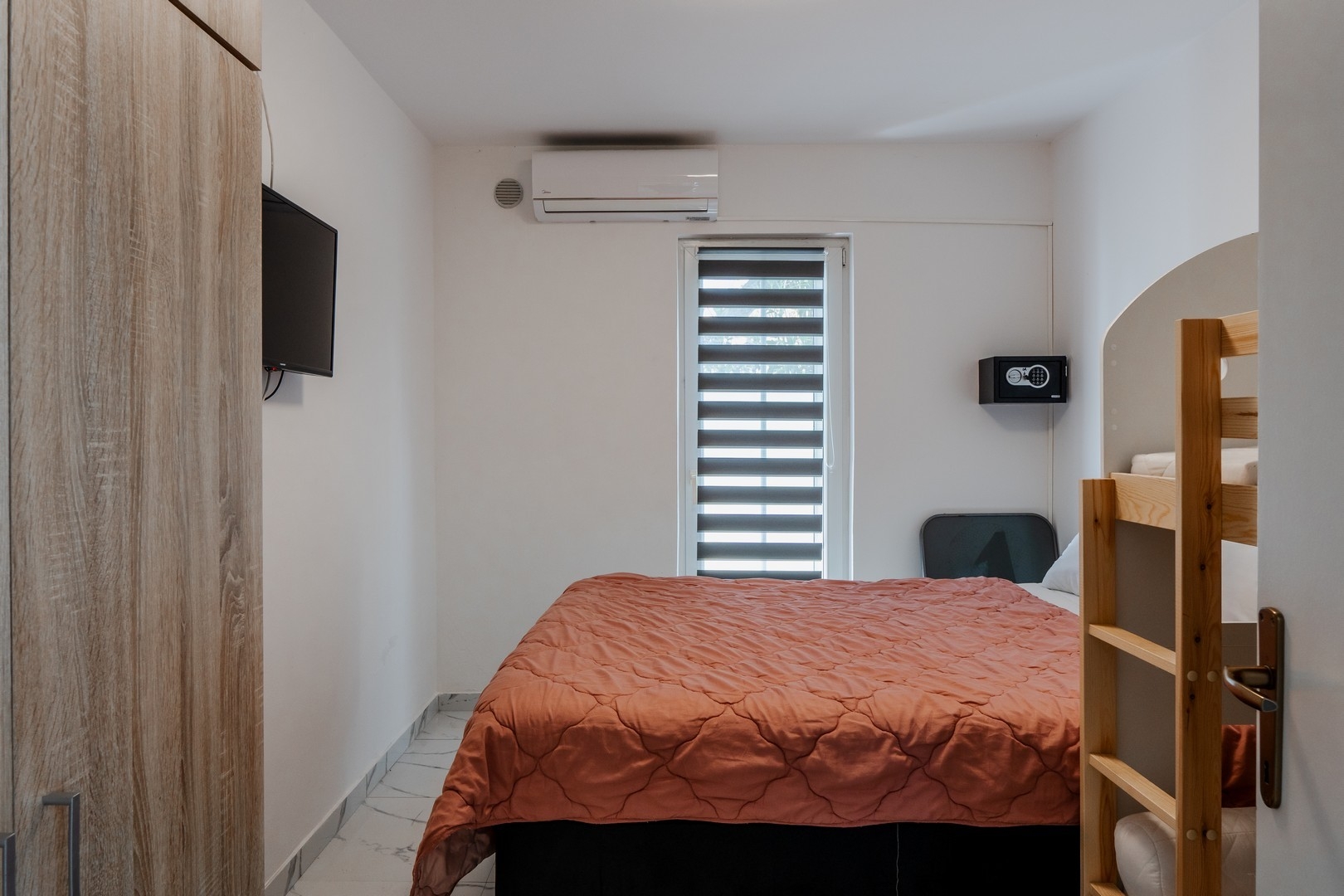 Apartment can accommodate 2 guests. Beds are situated in 1 sleeping rooms, within 21m2. Guests can use a private terrace to enjoy the warm summer evenings. INCLUDED IN THE PRICE: tourist tax, final cleaning, air-conditioning, parking, internet, hairdryer. The availability of additional services for your chosen dates of stay, as well as their prices (if none are listed) must be checked ahead of time. Any additional services not shown in the price calculation are payable directly to the property owner and only if used by the visitor.